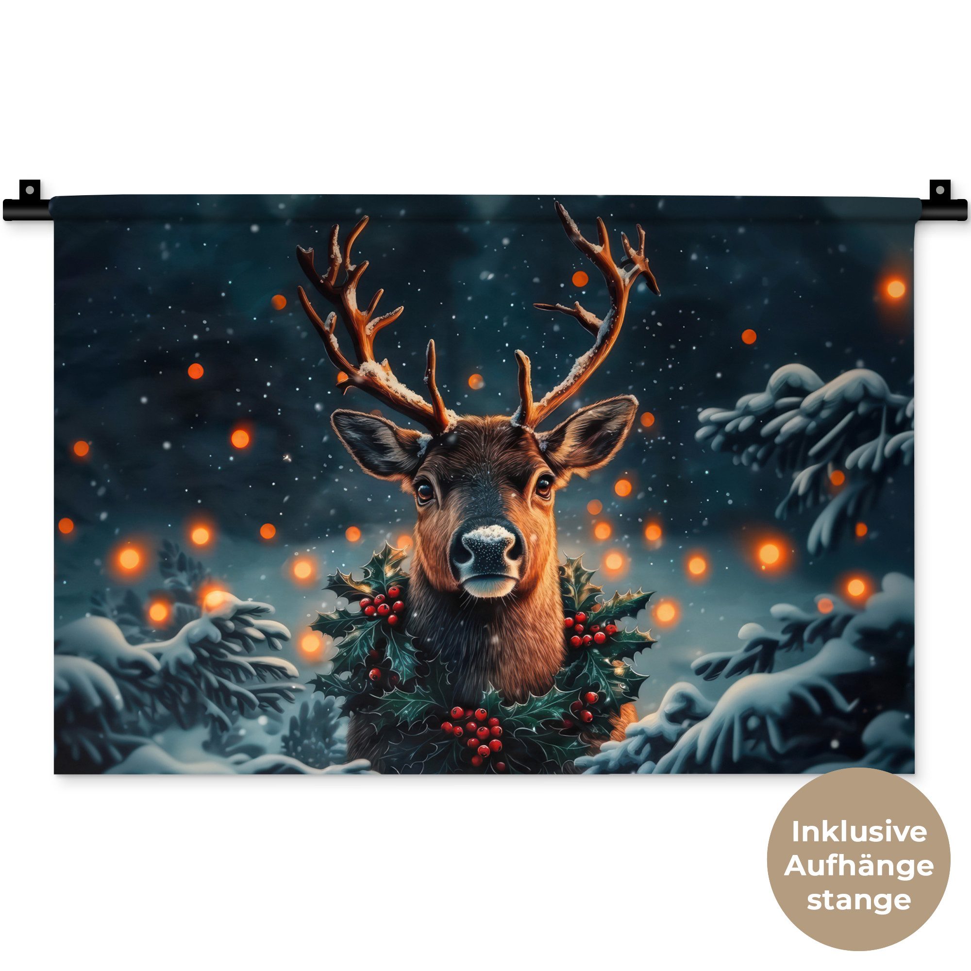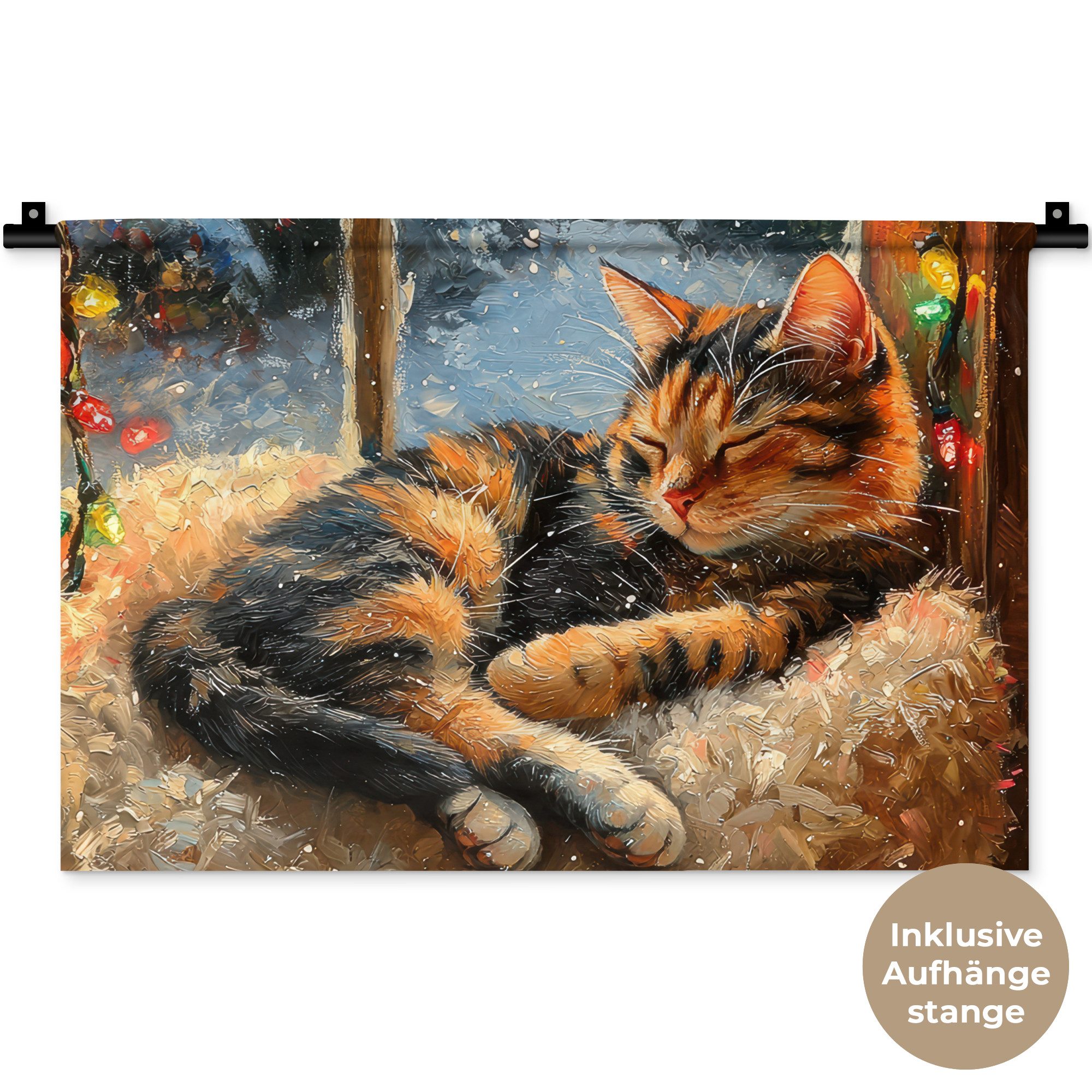 Der Wandteppich besteht aus robustem und strapazierfähigem Material. Er eignet sich hervorragend, um Ihrem Zuhause zusätzliche Atmosphäre und Wärme zu verleihen. Der Druck ist gestochen scharf mit leuchtenden Farben und sorgt für eine beeindruckende Wirkung. Die mitgelieferte Aufhängestange macht das Anbringen besonders einfach.