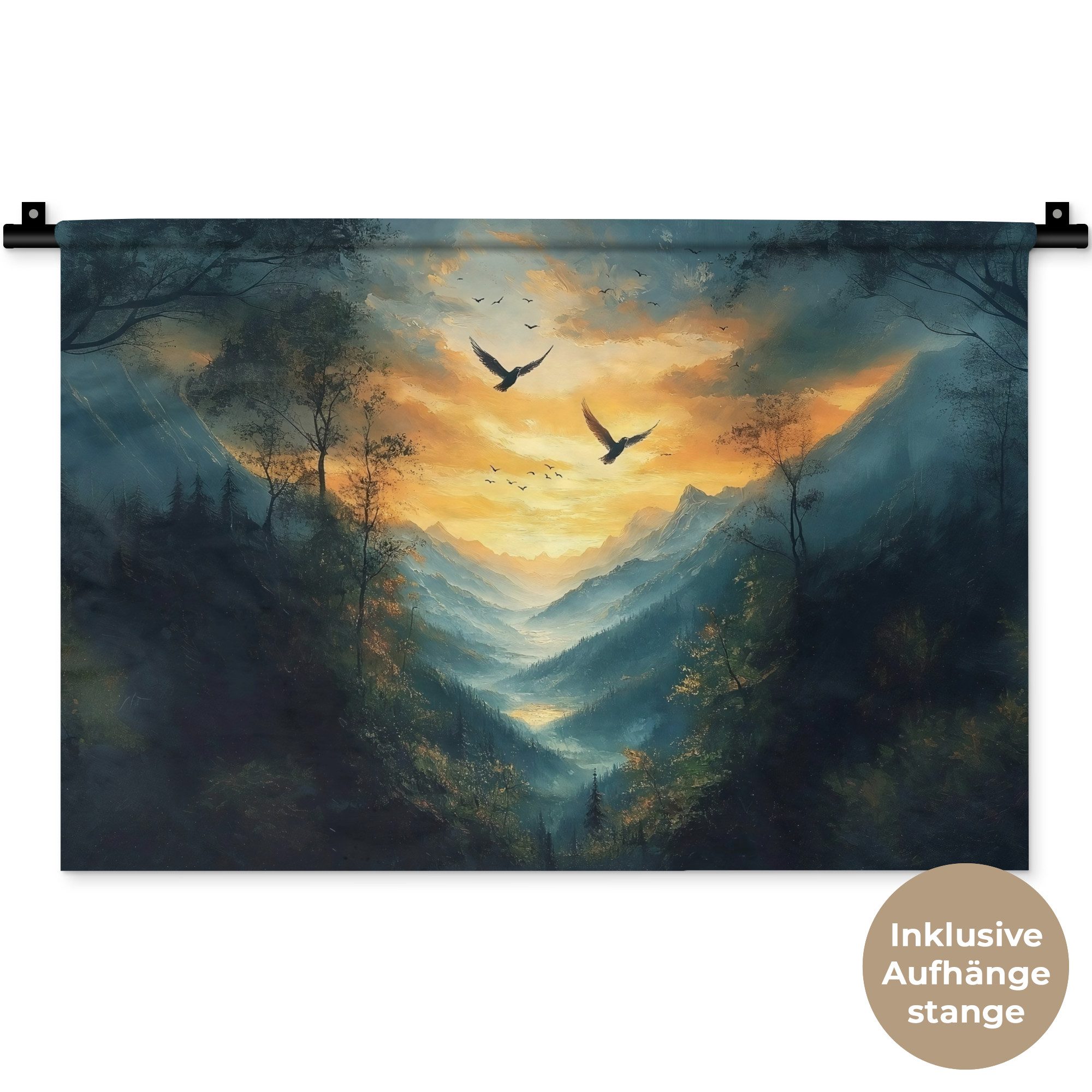 Der Wandteppich besteht aus robustem und strapazierfähigem Material. Er eignet sich hervorragend, um Ihrem Zuhause zusätzliche Atmosphäre und Wärme zu verleihen. Der Druck ist gestochen scharf mit leuchtenden Farben und sorgt für eine beeindruckende Wirkung. Die mitgelieferte Aufhängestange macht das Anbringen besonders einfach.
