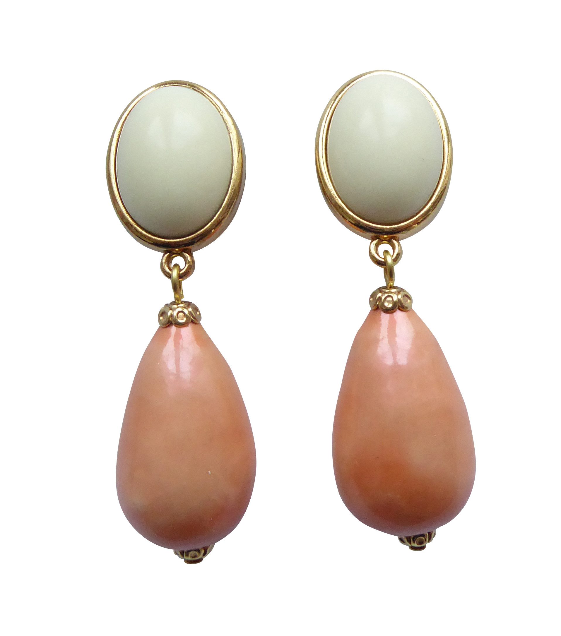 Besonders auffällige Clip-Ohrstecker (für Ohrlöcher) von JustWin mit einem ovalen Stein in einem schönen Elfenbein-Ton und mit einem pfirsich-farbenen Anhänger. Der Stein besteht aus Acryl und die Perle aus lackiertem Pappmaché, so dass die Ohrringe extrem leicht und angenehm zu tragen sind. Bei dem Material der schönen Ohrringe handelt es sich um eine Metalllegierung mit einer Gelbvergoldung. Das Material ist antiallergen und sehr gut verträglich. Durch ihre Розмір wirken die stylischen, hübschen Ohrstecker besonders eindrucksvoll und sind ein absoluter Eyecatcher! Hinter dem Label „JustWin“ stehen die beiden Designer Kurt Justmann und Paul Winter, die modischen, glamourösen Statement-Schmuck für Frauen entwerfen, die voluminöse und bunte Designs lieben. Die extravaganten, handgearbeiteten Kreationen sind ein eleganter Blickfang und spielen mit auffälligen, fröhlichen Farben, Formen und Oberflächen. Der hochwertige, stilvolle Modeschmuck ist bereits auf der Titelseite der deutschen VOGUE zu bewundern gewesen und erscheint regelmäßig in der Presse. Liebhaberinnen von Statement-Ohrringen in vielen verschiedenen Trend-Farben werden bei JustWin nicht widerstehen können! Moderner, edler und individueller Mode-Stil für jedes Outfit. Die schicken und gleichzeitig auch klassischen Designer-Ohrringe werten jeden Look auf, egal bei welcher Gelegenheit: ob im Büro, in der Freizeit, im Urlaub oder bei einem festlichen Anlass wie einer Feier, Party, Ball, Hochzeit, Konfirmation, Oktoberfest etc. Sie werden gerne zusammen mit einem Dirndl als ausgefallenes Trachten-Schmuckstück getragen. Dieser tolle Bestseller ist auch ein wunderbares Geschenk zum Geburtstag, Weihnachten, Hochzeitstag, Valentinstag oder dergleichen und ein besonderes Must-Have für Frauen und Mädchen. Maße der Ohrringe: Höhe: 5,9 cm, Breite: 1,7 cm.