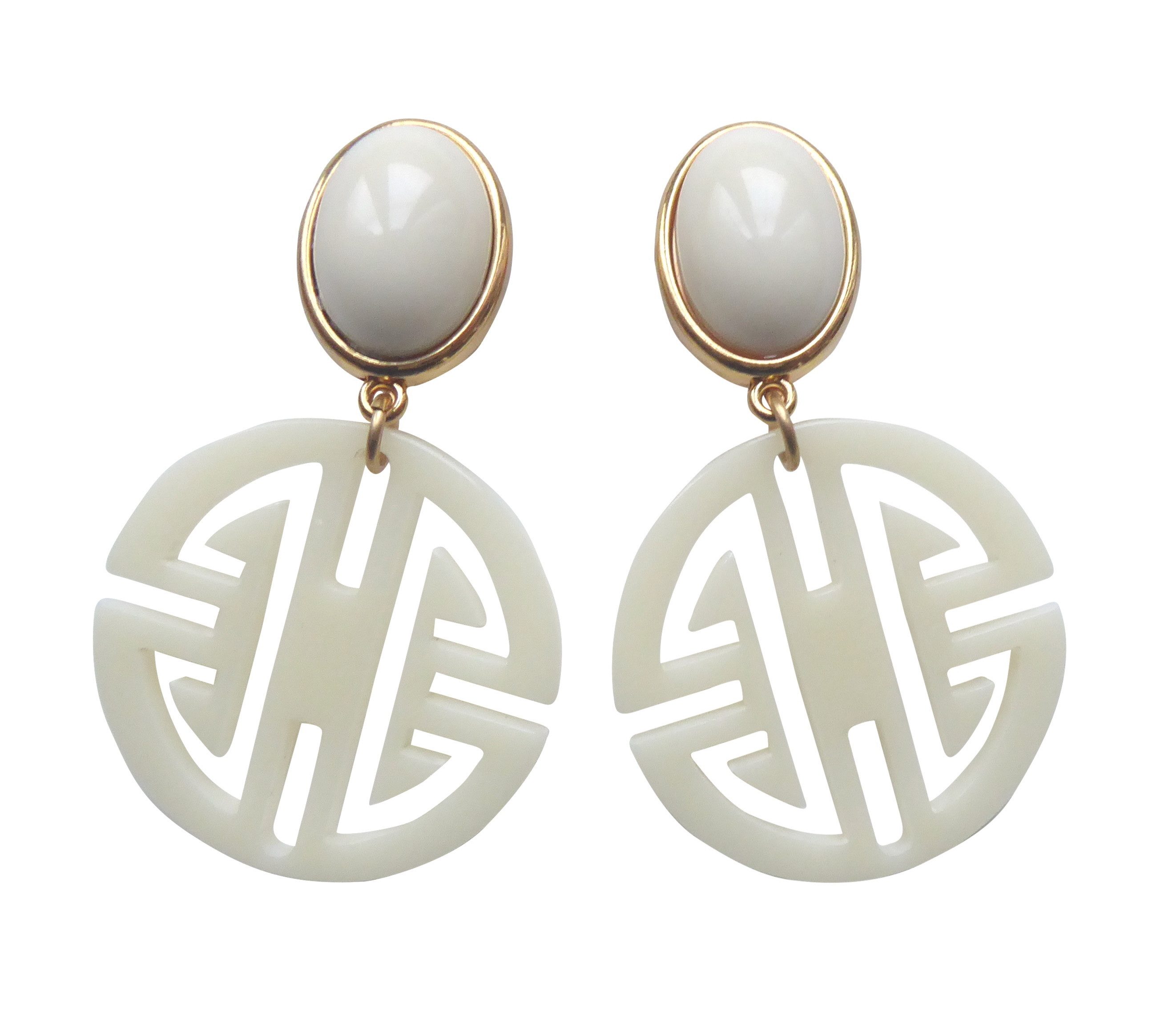 Auffällige, elfenbein-farbene bzw. beige Clip-Ohrstecker (für Ohrlöcher) von JustWin mit einem ovalen Stein und einem geschnitzten Ornament-Anhänger in einer geometrischen Form. Der Stein und der Anhänger bestehen aus Acryl, so dass die Ohrringe extrem leicht sind. Bei dem Material der modischen Ohrringe handelt es sich um eine Metalllegierung mit einer Gelbvergoldung. Das Material ist antiallergen und sehr gut verträglich. Durch ihre Розмір wirken die stylischen, hübschen Stecker besonders eindrucksvoll und sind ein absoluter Hingucker! Hinter dem Label „JustWin“ stehen die beiden Designer Kurt Justmann und Paul Winter, die modischen, glamourösen Statement-Schmuck für Frauen entwerfen, die voluminöse und bunte Designs lieben. Die extravaganten, handgearbeiteten Kreationen sind ein eleganter Blickfang und spielen mit auffälligen, fröhlichen Farben, Formen und Oberflächen. Der hochwertige, stilvolle Modeschmuck ist bereits auf der Titelseite der deutschen VOGUE zu bewundern gewesen und erscheint regelmäßig in der Presse. Liebhaberinnen von Statement-Ohrringen in vielen verschiedenen Trend-Farben werden bei JustWin nicht widerstehen können! Moderner, edler und individueller Mode-Stil für jedes Outfit. Die schicken und gleichzeitig auch klassischen Designer-Ohrringe werten jeden Look auf, egal bei welcher Gelegenheit: ob im Büro, in der Freizeit, im Urlaub oder bei einem festlichen Anlass wie einer Feier, Party, Ball, Hochzeit, Konfirmation, Oktoberfest etc. Sie werden gerne zusammen mit einem Dirndl als ausgefallenes Trachten-Schmuckstück getragen. Dieser tolle Bestseller ist auch ein wunderbares Geschenk zum Geburtstag, Weihnachten, Hochzeitstag, Valentinstag oder dergleichen und ein besonderes Must-Have für Frauen und Mädchen. Maße der Ohrringe: Höhe: 6,1 cm, Breite Anhänger: 3,3 cm. Gewicht: ca. 8 g.