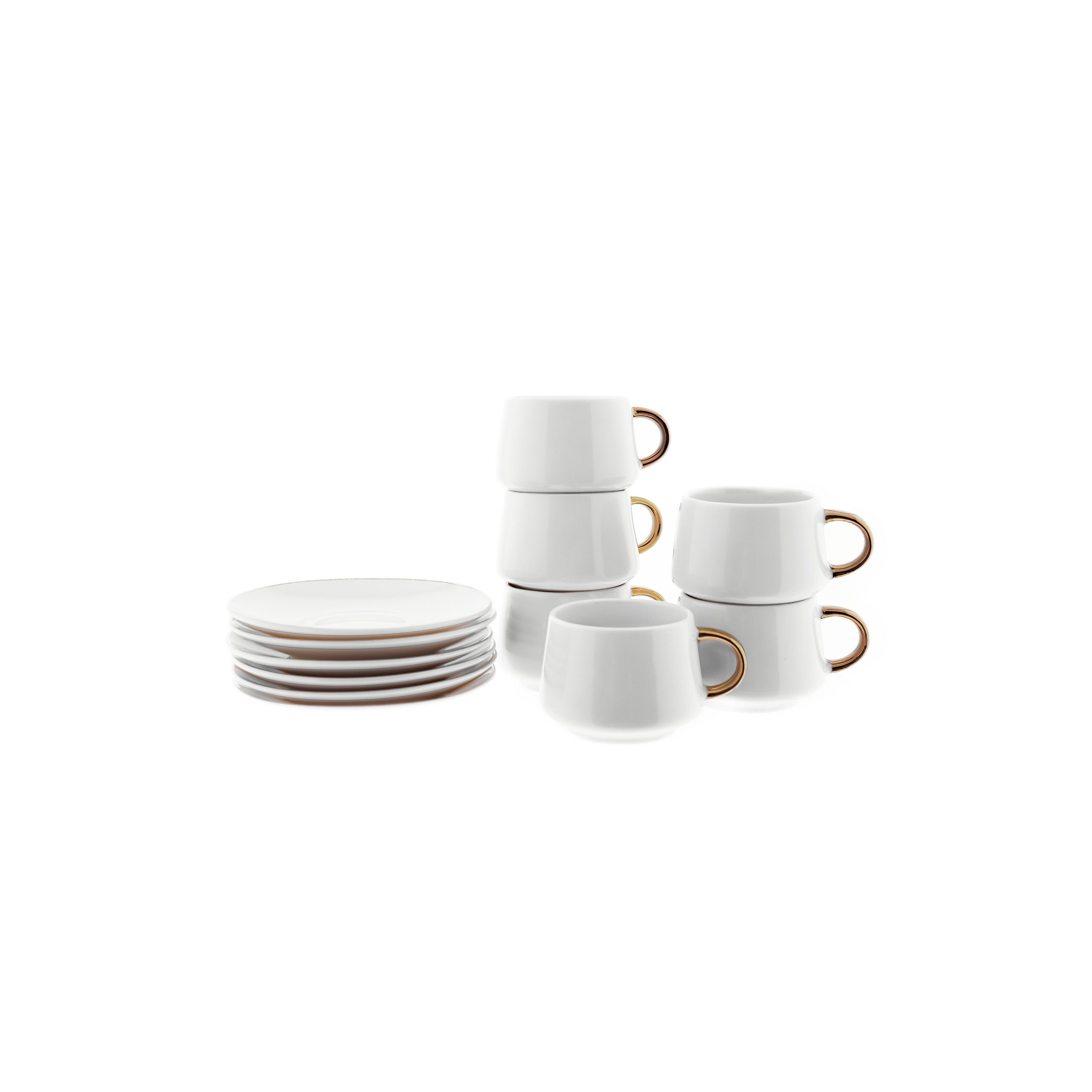 Weiß mit goldfarbenem Henkel und goldener Unterteller-Umrandung – luxuriös elegant