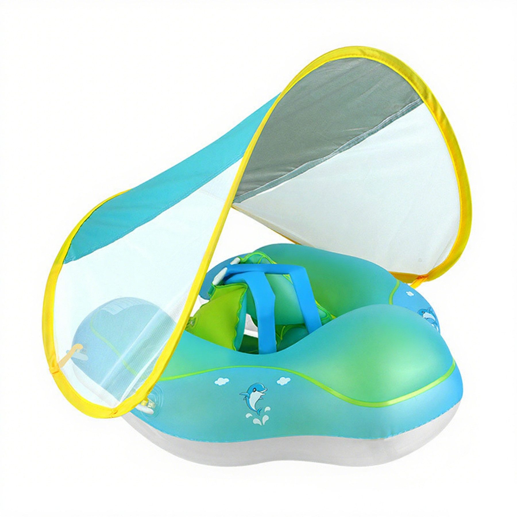 Atmungsaktiver Baby Float Aufblasbare Schwimmreifen Baby, mit abnehmbarem Verdeck, Sonnendach hat eine verbesserte Innenschicht, die mit einem silbernen Sonnenschutzmittel beschichtet ist, Sonnenschutzfaktor UPF50+, kann die Haut des Babys vor ultravioletten Strahlen und direkter Sonneneinstrahlung schützen, Sie können die Sommerzeit jederzeit und überall genießen, für das Baby, um den kühlen Sommer zu bringen, geeignet für Schwimmbäder, Gartenpools, aufblasbare Schwimmbäder, Bäder, Strände, Schwimmring Spielzeug.