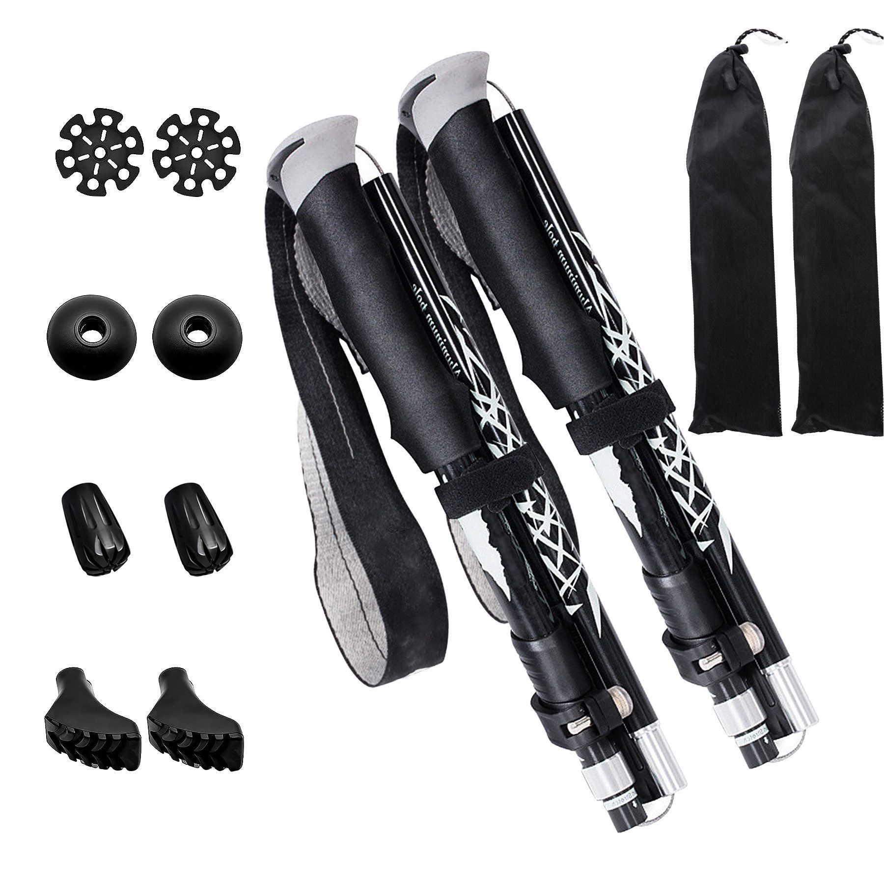 Lieferumfang | Geeignet für alle Gelände 2 x Schlammkorb 2 x Schneekorb 2 x Stiefelspitze für harte Oberflächen 2 x Gummispitze 2 x Wanderstöcke 1 x Aufbewahrungstasche 1 x Anleitung |