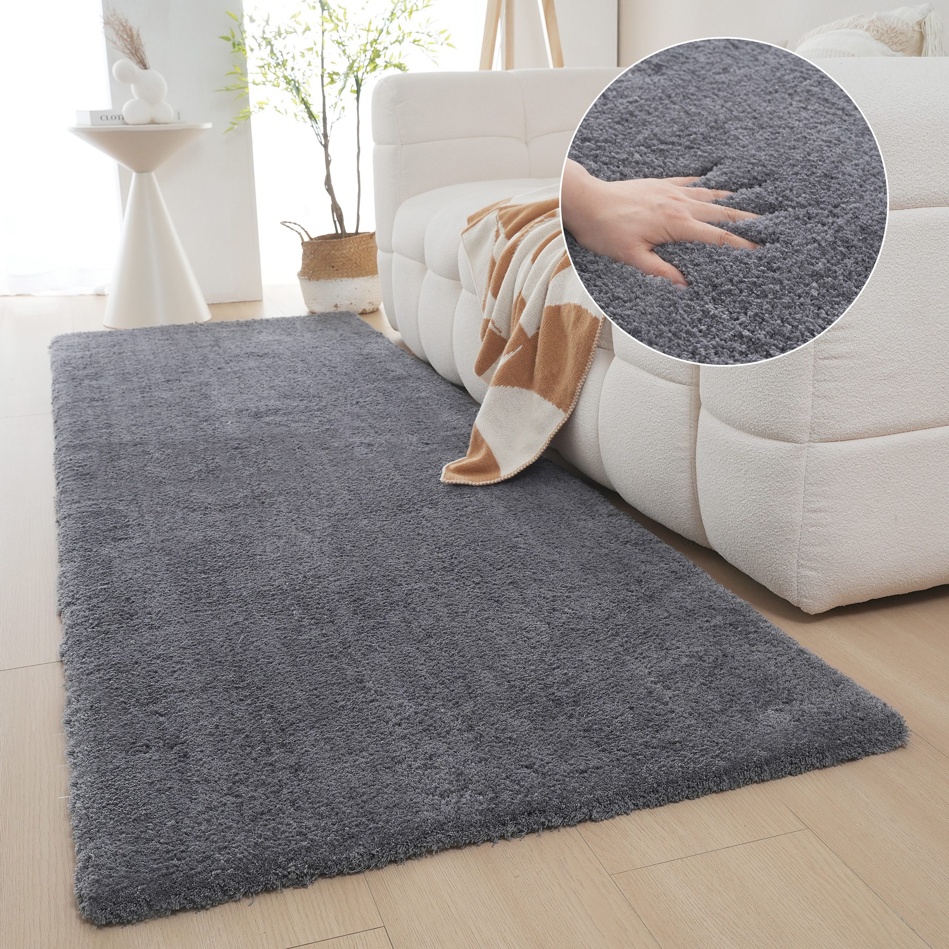 Erst war ich skeptisch, da ich im Vorfeld bereits einen anderen Hochflorteppich bestellt hatte und diesen nach der Ankunft direkt zurück senden musste. Nach der Ankunft ausgerollt, auslegen lassen ( hat ca. 1 Tag gedauert) und für Top befunden. Er fusselt nicht, verliert selten Fasern, riecht nicht chemisch wie andere Produkte. Nur ein Manko hat der Teppich, dass wenn der Hund mit Geschwindigkeit öfters darüber rennt, dass sich einzelne Fäden ziehen, aber noch vertretbar. Und absolut unschlagbar ist das Wolkengefühl. Einfache Kaufempfehlung.