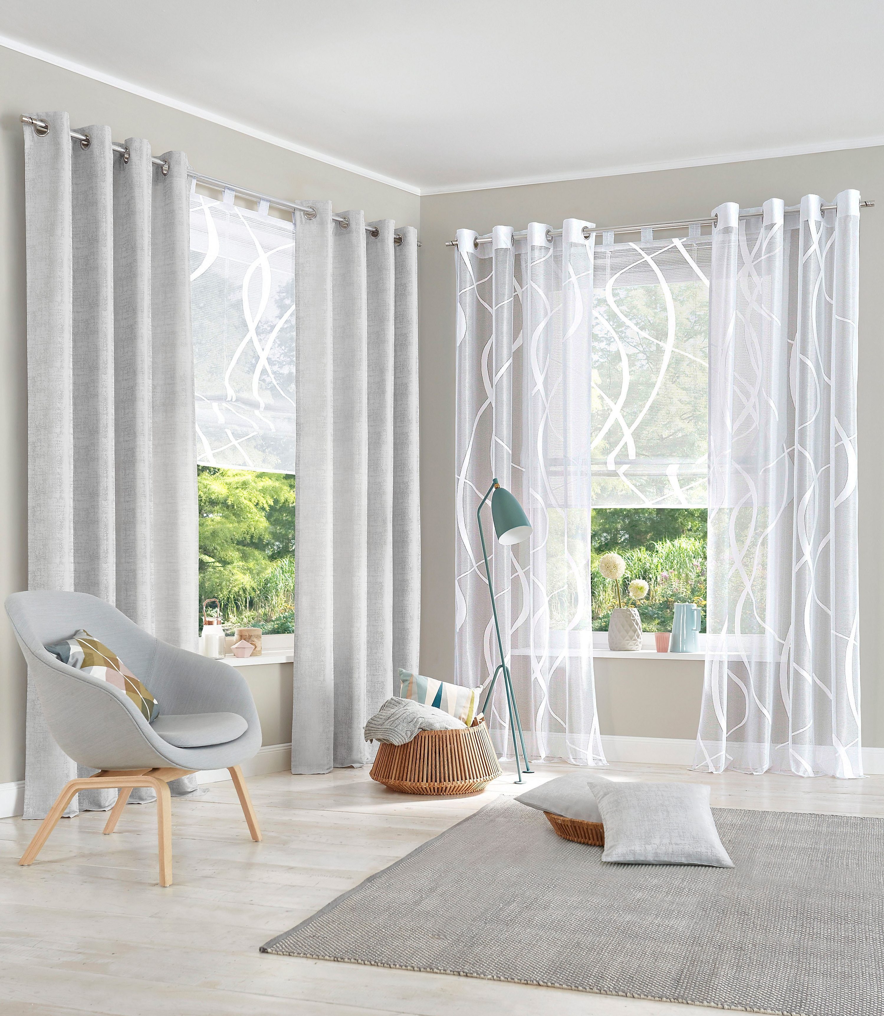 Hinweis Aufhängung | Aufhängung erfolgt mittels Schlaufen an der Gardinenstange. |