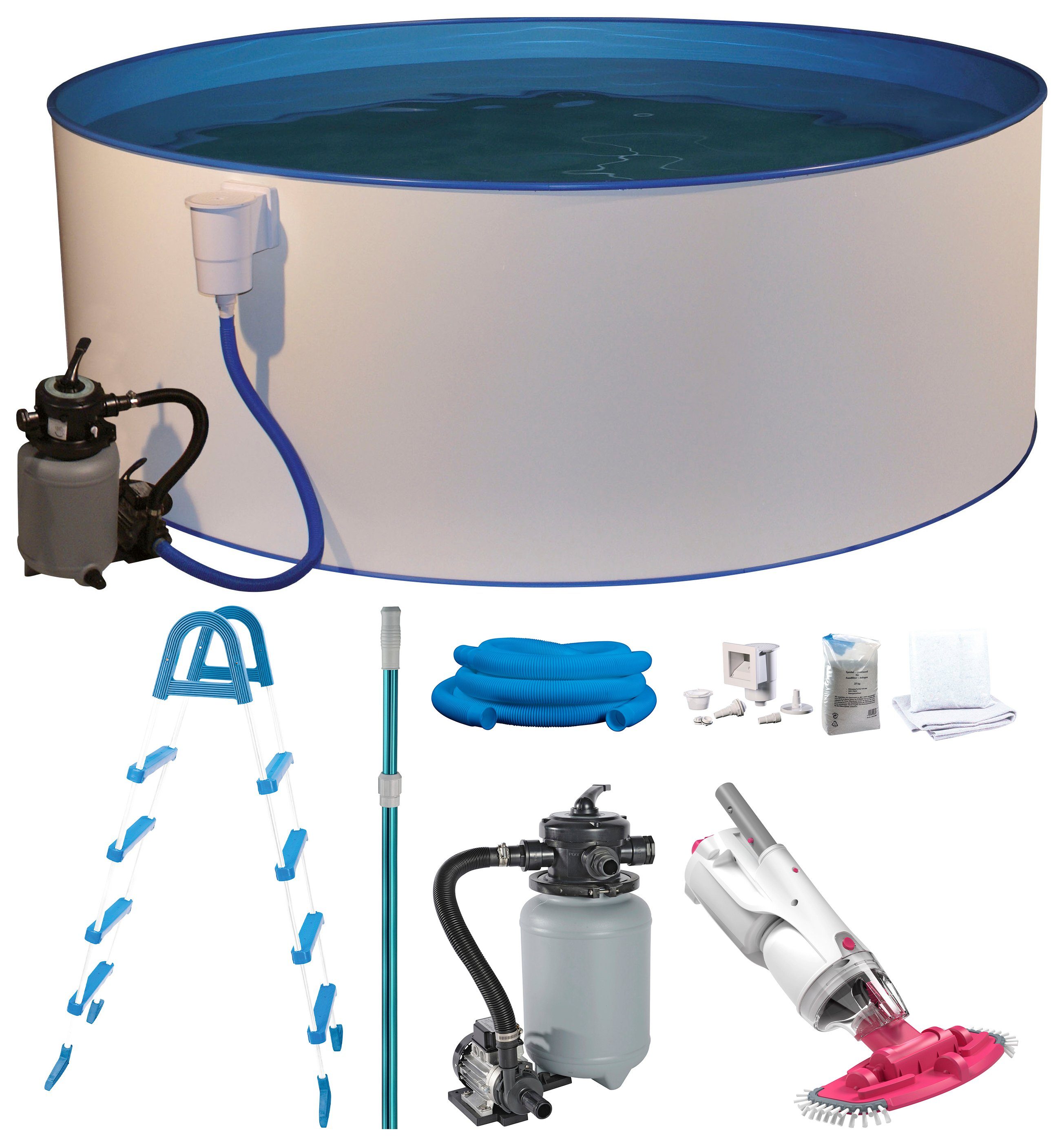 Lieferumfang | Akku-Bodensauger BWT BC 30 Sandfilteranlage Stahlrohrleiter |