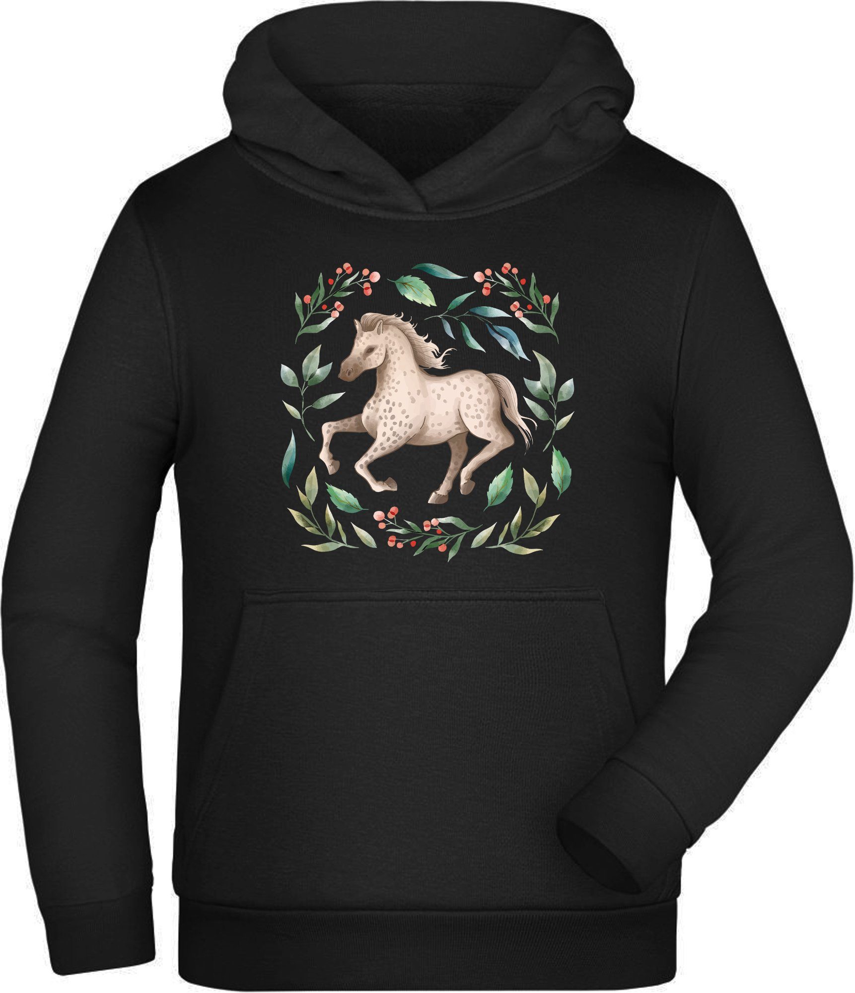 Kinder und Jugend Hoodie Kapuzen Sweatshirt mit Aufdruck - Pferde Hoodie Laufendes Pferd im Blumenkranz Unser Kinder und Jugend Hoodie bzw. Kapuzen Sweatshirt mit Aufdruck ist der ultimative Ausdruck von Stil und Komfort. Dieses Kleidungsstück ist perfekt für diejenigen, die Wert auf trendige Designs und hochwertige Materialien legen. Egal, ob dein Kind oder Enkel ihn in seiner Freizeit trägt oder um seinem Outfit eine lässige Note zu verleihen, dieser Hoodie wird sicherlich eure Erwartungen übertreffen. Premium-Qualität: Wir legen großen Wert auf Qualität, deshalb wird dieser Hoodie aus erstklassigen Materialien gefertigt. Die Kombination aus weicher Baumwolle und strapazierfähigem Polyester garantiert Langlebigkeit und gleichzeitig ein angenehmes Tragegefühl. Die sorgfältige Verarbeitung zeigt sich in jedem Nahtdetail, wodurch der Hoodie zu einem verlässlichen Begleiter für zahlreiche Abenteuer wird. Die weiche Innenseite sorgt für Wärme und Gemütlichkeit an kühlen Tagen. Trendiger Aufdruck: Der Aufdruck auf der Vorderseite des Hoodies verleiht dem Outfit einen einzigartigen Charakter. Kapuze: Die großzügige Kapuze bietet nicht nur Schutz vor Wind und Wetter, sondern verleiht dem Outfit eine coole Note Geräumige Taschen: Die Kängurutasche auf der Vorderseite ist nicht nur praktisch, um deine Hände warm zu halten, sondern bietet auch Platz für kleine persönliche Gegenstände. Vielseitig kombinierbar: Dieser Hoodie lässt sich mühelos in verschiedene Outfits integrieren. Kombiniere ihn mit Jeans für einen lässigen Look oder trage ihn über einem T-Shirt für zusätzliche Wärme und Style. Moderner Stil: Die Kombination aus hochwertigem Material und trendigem Design macht diesen Hoodie zu einem Must-have für alle Modebegeisterten. Bequeme Passform: Die lockere Passform ermöglicht uneingeschränkte Bewegungsfreiheit, während der elastische Bund und die Bündchen für eine optimale Passform sorgen. Langlebige Qualität: Unsere Produkte werden aus sorgfältig ausgewählten Materialien hergestellt, um sicherzustellen, dass sie auch nach vielen Wäschen ihre Form und Farbe behalten. Der Kinder Hoodie Kapuzen Sweatshirt mit Aufdruck ist mehr als nur ein Kleidungsstück – er ist eine Aussage. Verleihe deinem Look eine persönliche Note und genieße den Komfort, den dieser Hoodie bietet. Bestelle jetzt und erlebe Stil und Bequemlichkeit in einem Kleidungsstück.