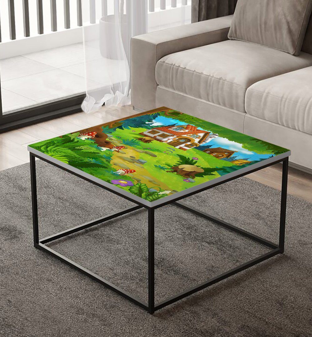 Tischfolie Dorf im Wald Bubblefree selbstklebend ist kompatibel mit IKEA Lacktisch.