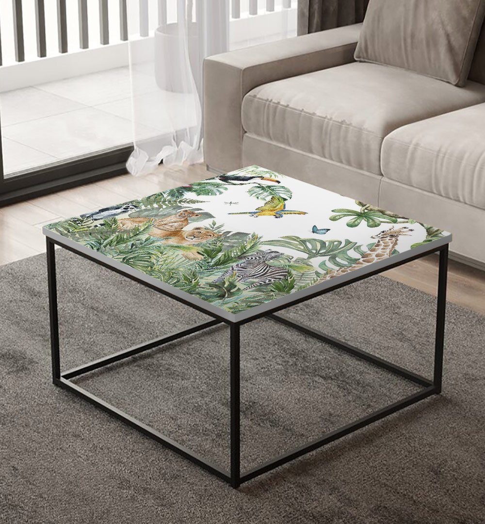 Tischfolie Dschungeltiere mit Palmen Bubblefree selbstklebend ist kompatibel mit IKEA Lacktisch.