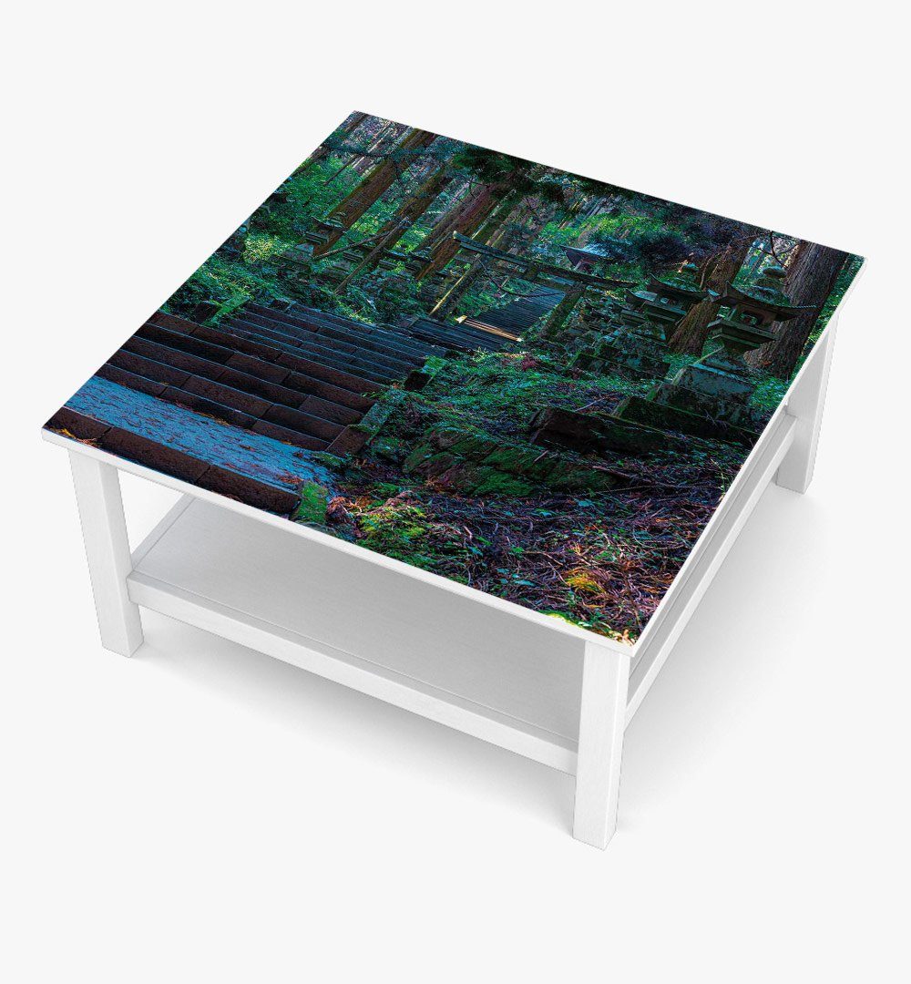 Tischfolie Tori Tor im Wald Bubblefree selbstklebend ist kompatibel mit IKEA Lacktisch.