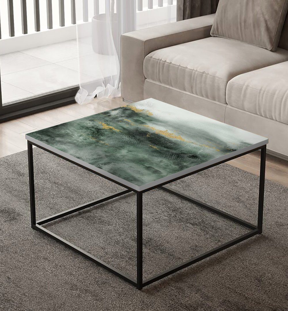 Tischfolie Verwischter Marmor Moos Grün Bubblefree selbstklebend ist kompatibel mit IKEA Lacktisch.