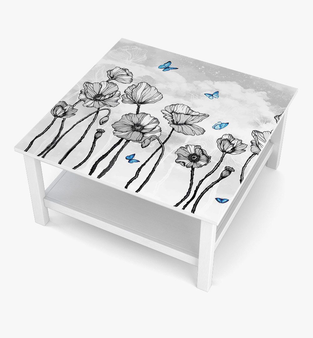 Tischfolie Wunderland Blumen grau Bubblefree selbstklebend ist kompatibel mit IKEA Lacktisch.