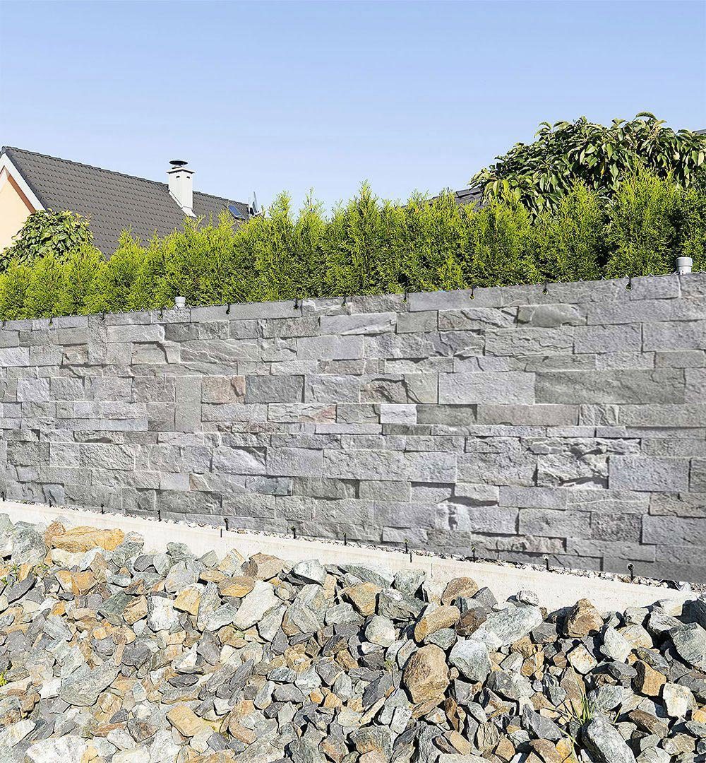 Wie wäre es mit unserem dekorativen Zaunbanner Steinwand hellgrau?