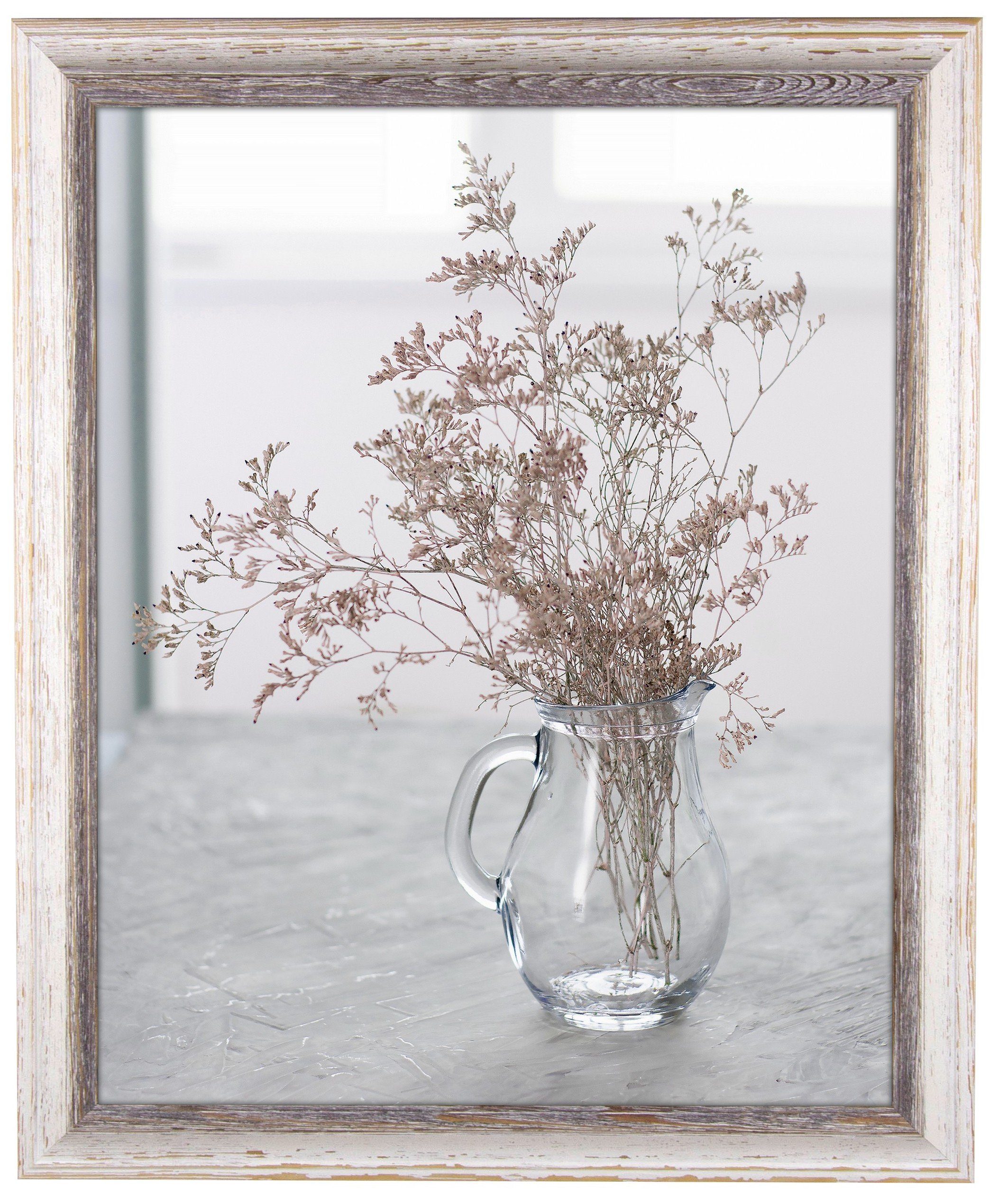 Hochwertiger Echtholz Bilderrahmen in verwitterter Shabby Chic Optik mit beige-weißem Grundton Hier finden Sie Standardmaße, DIN-Formate, Puzzlegrößen, Rubbelkartenmaße und USA-Größen.