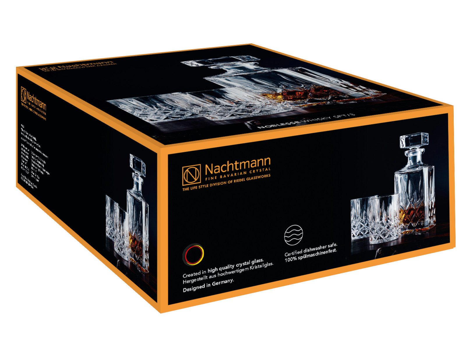 Das Nachtmann Noblesse Whisky Set 3-teilig kombiniert klassisches Design mit hoher Funktionalität und verleiht jedem Anlass einen Hauch von Luxus. Dieses Set besteht aus einer eleganten Whisky-Karaffe mit einem Fassungsvermögen von 750 ml und zwei passenden Whiskygläsern à 295 ml. Gefertigt aus hochwertigem Kristallglas, besticht es durch das charakteristische Schliffdesign der Noblesse-Serie, das für brillante Lichtreflexionen sorgt. Die Gläser sind spülmaschinenfest und somit ideal für den täglichen Gebrauch sowie besondere Anlässe geeignet.
