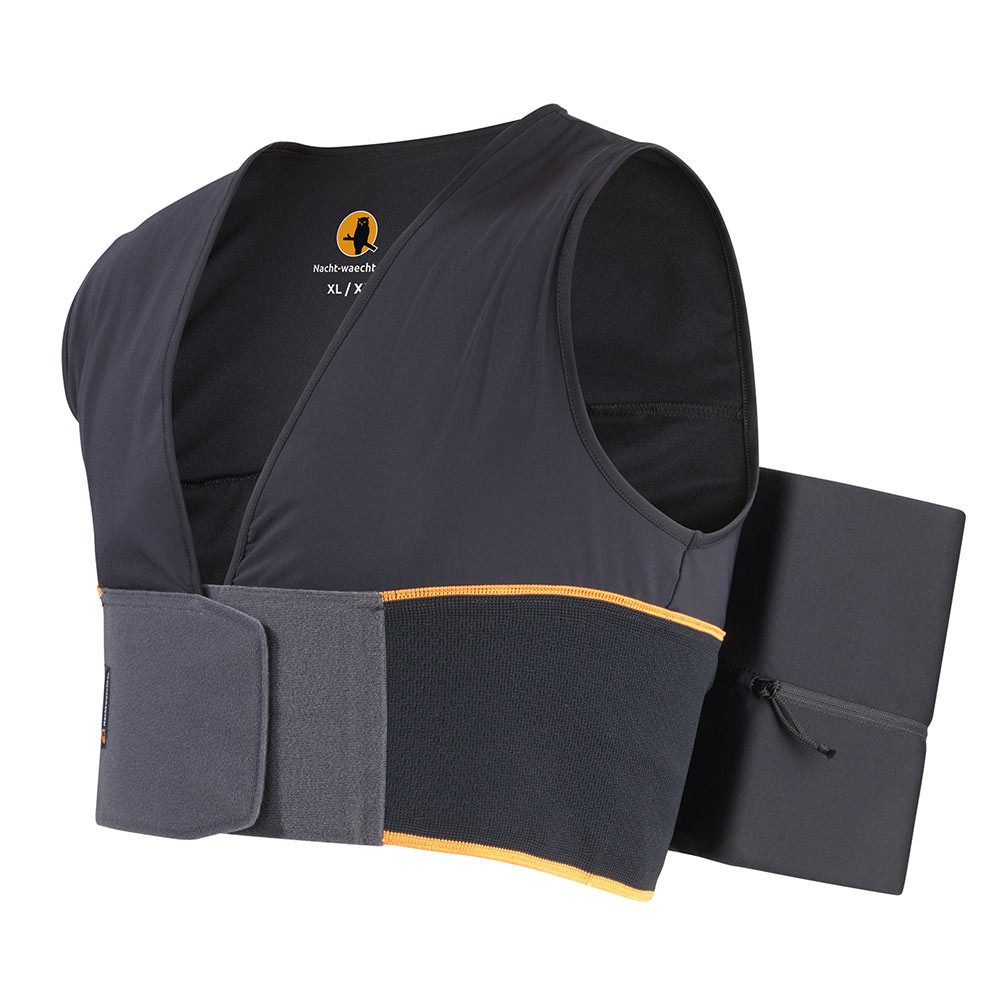 Die Nachtwaechter Schlafweste ist Ihr Trainingsgerät gegen Schnarchen. Laut Ärzten kann man sich die Seitenlage beim Schlafen mit einer Rückenlageverhinderungsweste antrainieren!