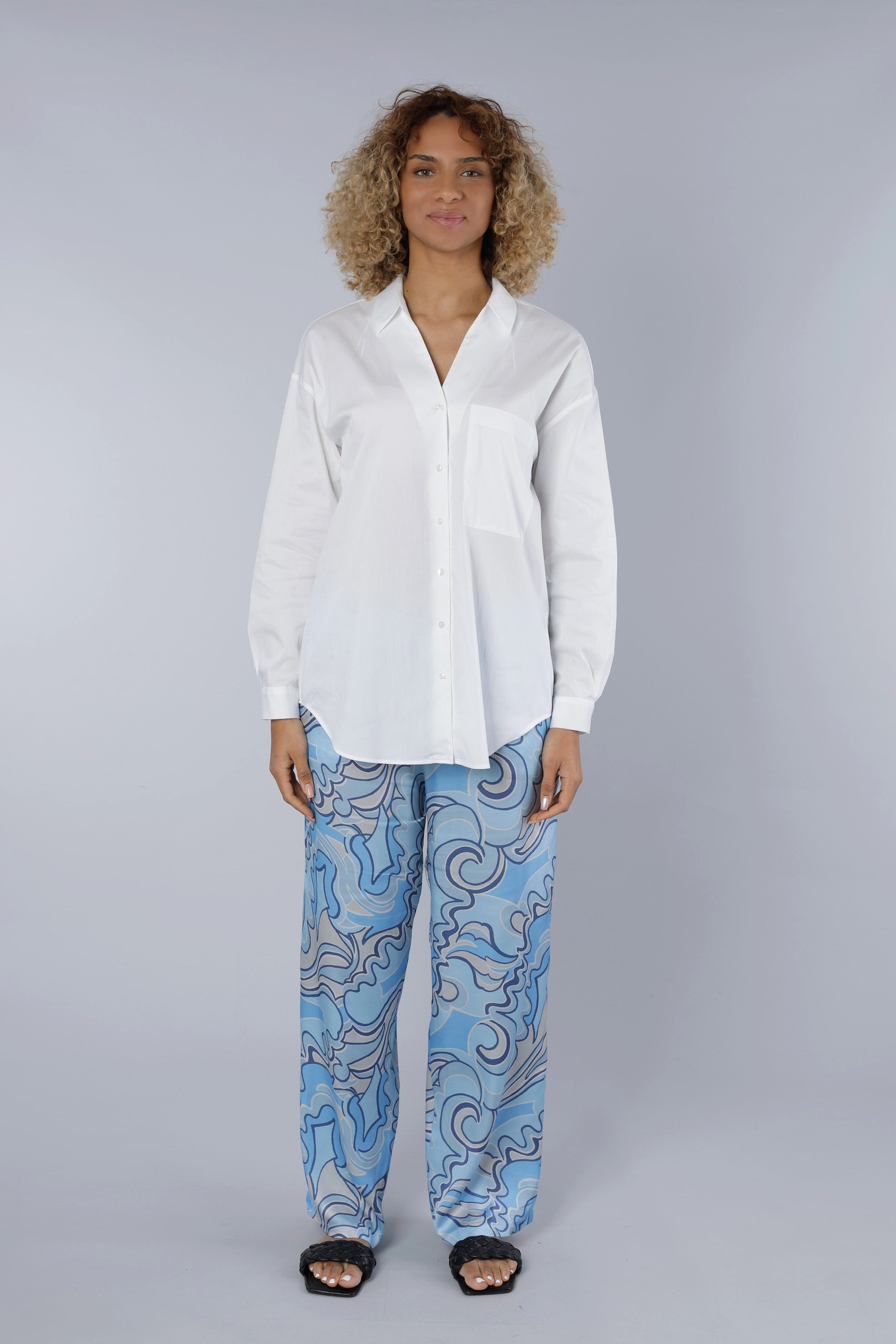 Diese Baumwollbluse der Marke Nadine H hat einen modischen V-Ausschnitt und eine schmale Manschette. Die große Brusttasche links und die Perlmutt farbigen Knöpfe verleihen der Bluse einen eleganten Look. Mit ihrer leicht längeren Rückenlänge ist sie perfekt für den Alltag geeignet.