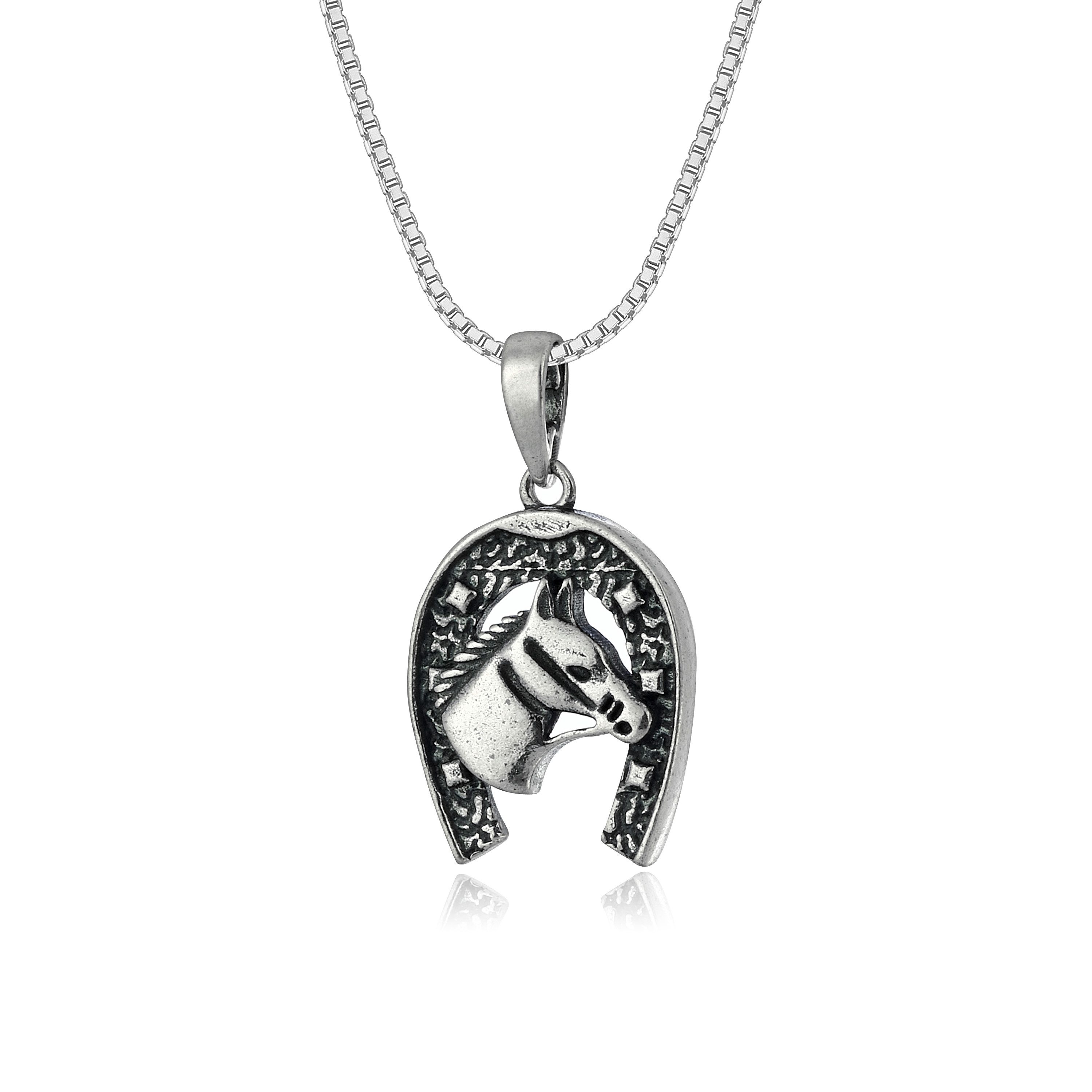 925 Silberkette und 925 Silber Pferd mit Hufeisen Anhänger