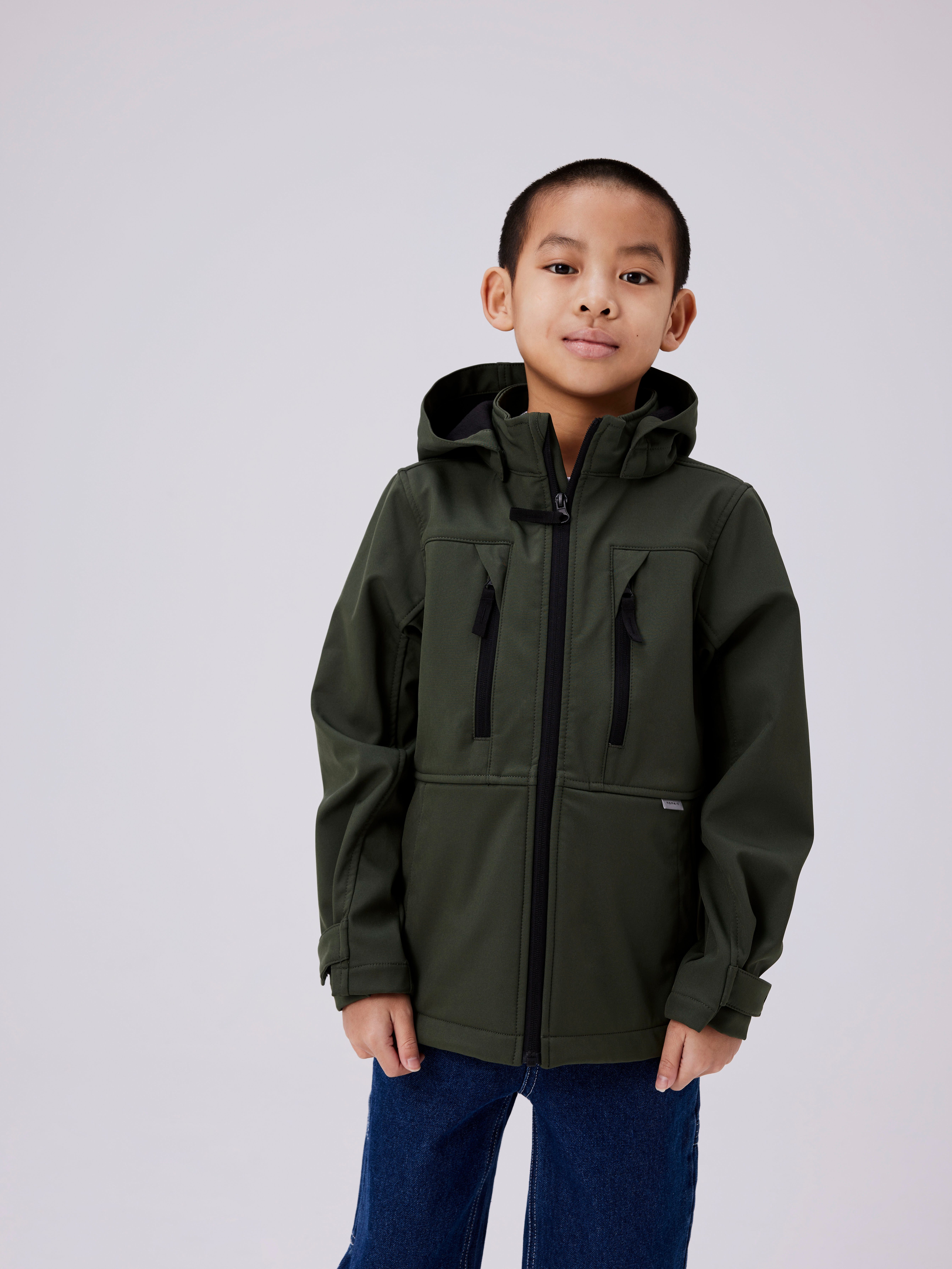 Die NAME IT Softshelljacke für Kinder kombiniert Funktionalität mit Еко-товари. Sie besteht zu einem großen Teil aus recyceltem Polyester, ist mit einem wärmenden Fleece-Innenfutter ausgestattet und bietet durch eine spezielle Membran Schutz vor Wind und Wasser. Die Jacke verfügt über eine abnehmbare Kapuze, einen Kinnschutz am Reißverschluss und reflektierende Details für mehr Sicherheit. Mit ihren praktischen Taschen und den verstellbaren Bündchen ist sie ein idealer Begleiter für die Übergangszeit und besticht durch ihre Langlebigkeit und leichte Pflege.