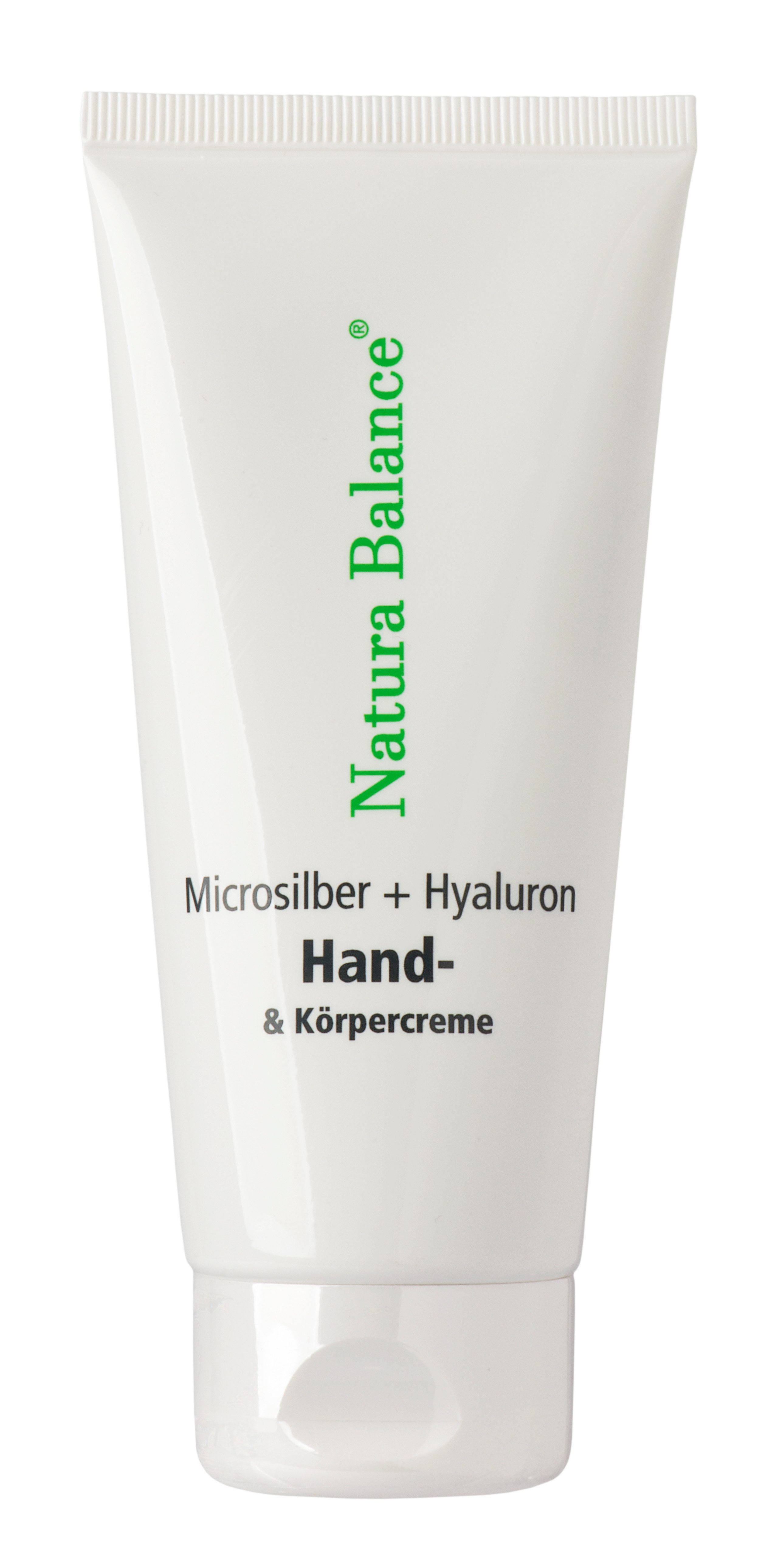 100ml Hand & Körper Creme mit Microsilber. Dermazeutische Wirkstoffkosmetik - Made in Germany. Intensivpflege für trockene, spröde und stark strapazierte Hände und Körperstellen, die schnell einzieht und ein angenehmes Hautgefühl hinterlässt. Die Haut erhält durch Hyaluronsäure intensive Feuchtigkeit und eine spürbar sanfte Oberfläche. Panthenol regeneriert gereizte Haut und fördert die Wundheilung. Vitamin E stärkt die natürlichen Schutzfunktionen, beugt der Faltenbildung vor und schützt die Haut vor dem Austrocknen und vor Umwelteinflüssen. Das enthaltene hochreine Microsilber kann durch seine antibakterielle Eigenschaft Entzündungen entgegenwirken, ist antiviral, fungizid und desinfizierend. Lezithin trägt zum Schutz der Zellen bei und stärkt die Barriereschicht der Haut. Niacin wirkt sichtbar gegen Altersflecken und Hyperpigmentierungen der Haut entgegen. 100% vegan. Anwendung: Für eine intensive Regeneration Hände bei Bedarf mehrmals täglich mit der Handcreme eincremen und pflegen. Gebrauchsanweisung Für eine intensive Regeneration Hände bei Bedarf mehrmals täglich mit der Handcreme eincremen und pflegen.