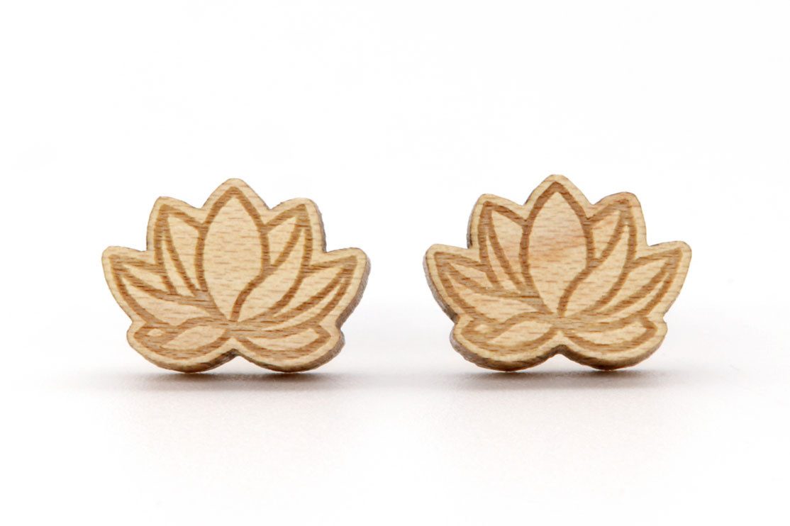 Lieferumfang: 1 Paar Holzohrringe mit Lotusblumen Gravur