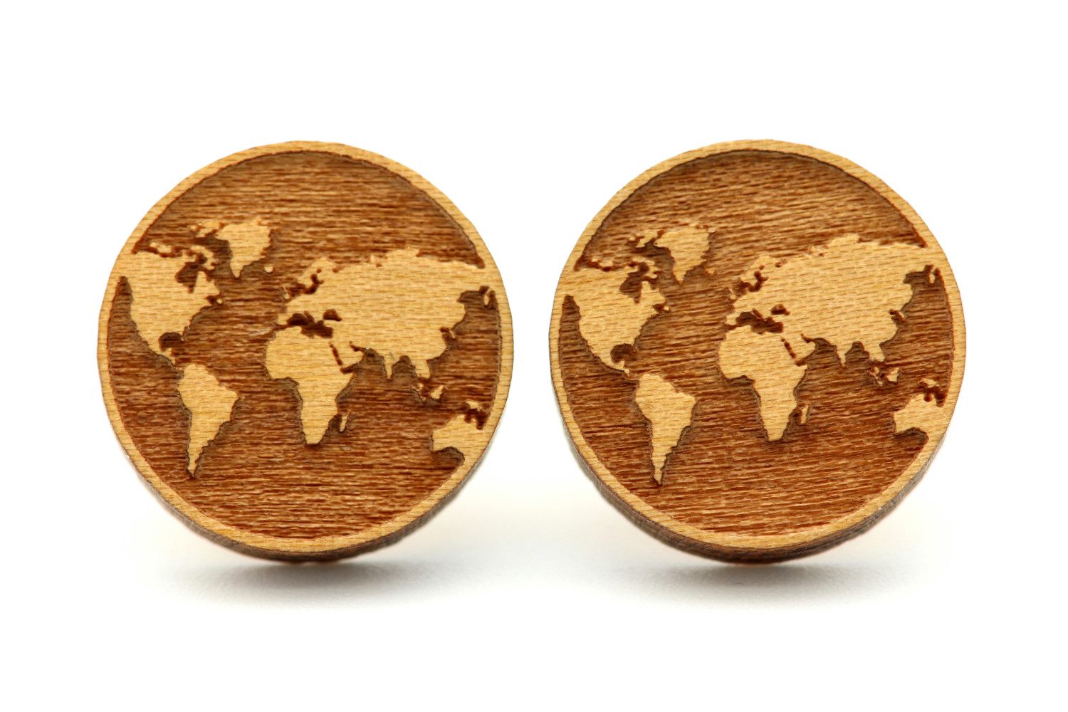Lieferumfang: 1 Paar Holzohrringe mit Weltkugel Gravur