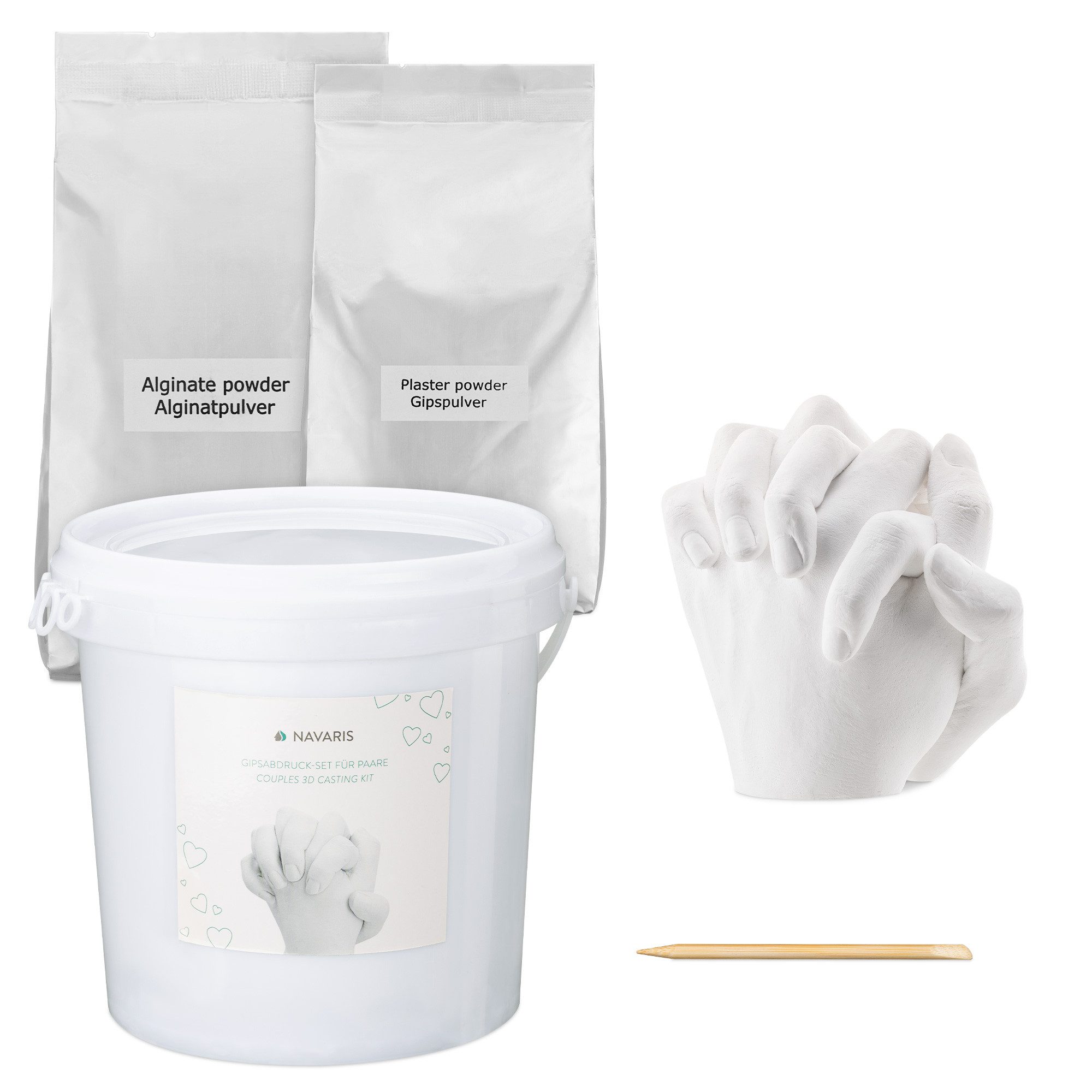 DETAILS: Du erhältst einen Eimer, Abformpulver zur Erstellung einer 3D-Form, sowie Gipspulver. Das Set ist geeignet für 1 Erwachsenenhand oder 2 Kinderhände.