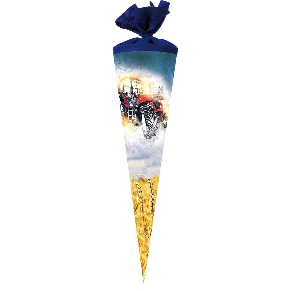 Coole Schultüte mit rotem Trekker und einem Weizenfeld in der Spitze.