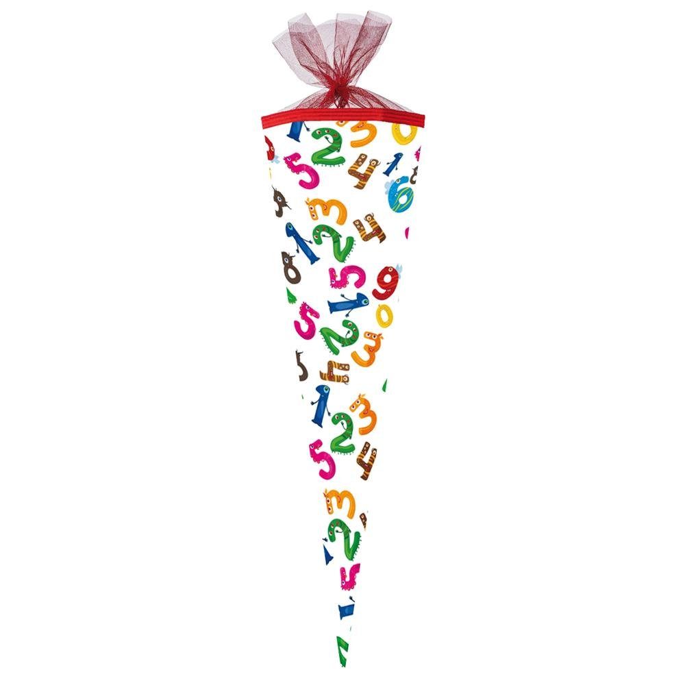 Weiße Schultüte mit bunten Zahlen für Jungen und Mädchen zum Schulanfang. Eine farbenfrohe Schultüte für Schulanfänger oder auch als Geschwistertüte eine tolle Überraschung. Mit Nestler Zuckertüten wird der Schulanfang zum unvergesslichen Ereignis - Made in Germany!