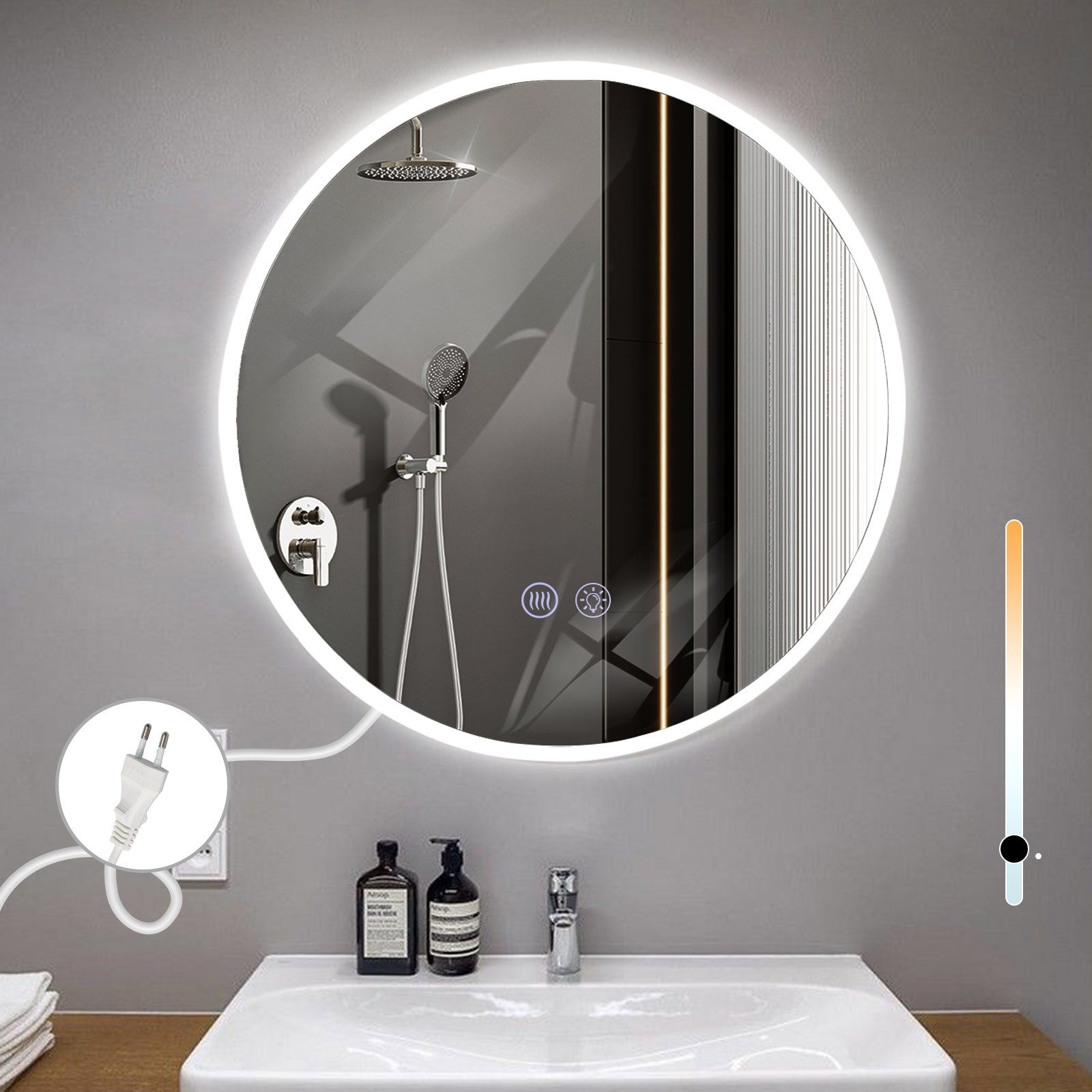 Dimmbar: Dieser zimmerspiegel verfügt über eine Touch-Schalter-Dimmerfunktion. Durch kurzes Drücken des Schalters können Sie die ideale Lichtfarbe zwischen Warmweiß, Neutralweiß und Kaltweiß (3000K bis 6500K) auswählen, um Ihren verschiedenen Bedürfnissen gerecht zu werden. Durch längeres Drücken des Schalters können Sie die Helligkeit leicht von 10% bis 100% einstellen. Durch erneutes längeres Drücken des Schalters können Sie die Helligkeit präzise von niedrig nach hoch einstellen.