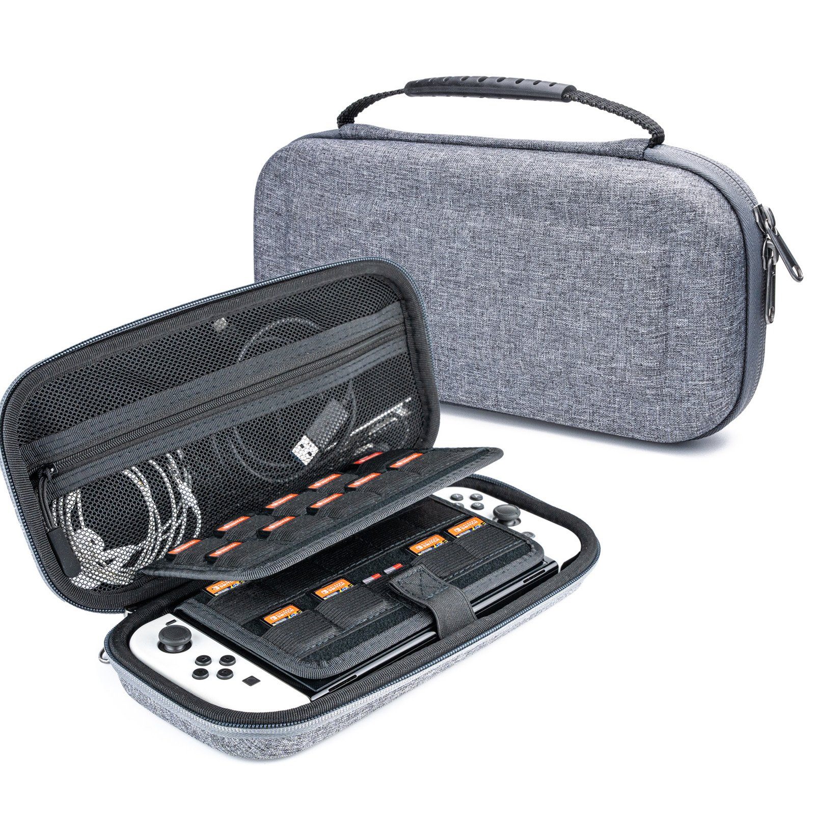 Die Spielekonsolen-Tasche besteht aus hartem EVA-Material und weicher Mikrofaser-Innenseite, das Ihr Gerät vor Kratzern, versehentlichen Stößen und Stürzen schützt.