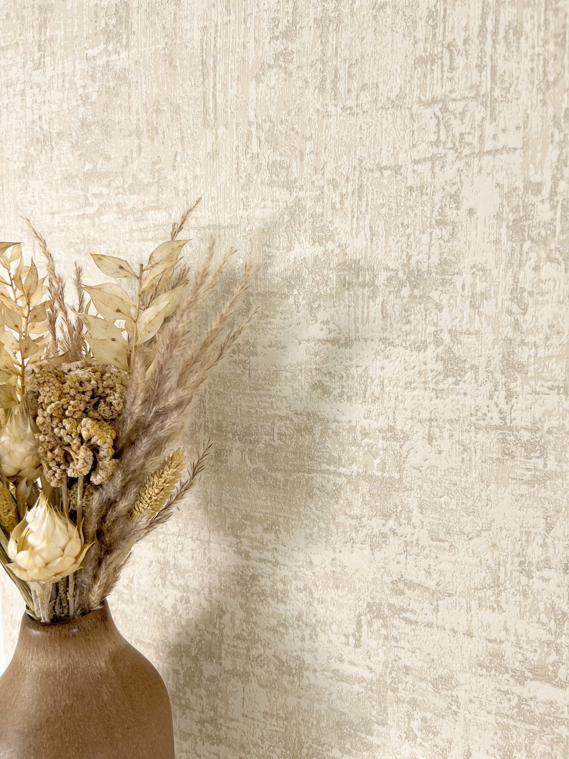 Oberflächenstruktur | Beige Tapete Modern Unifarbe - Mustertapete Einfarbig Creme Uni Industrial Feine Muster Struktur für Wohnzimmer Schlafzimmer Küche |
