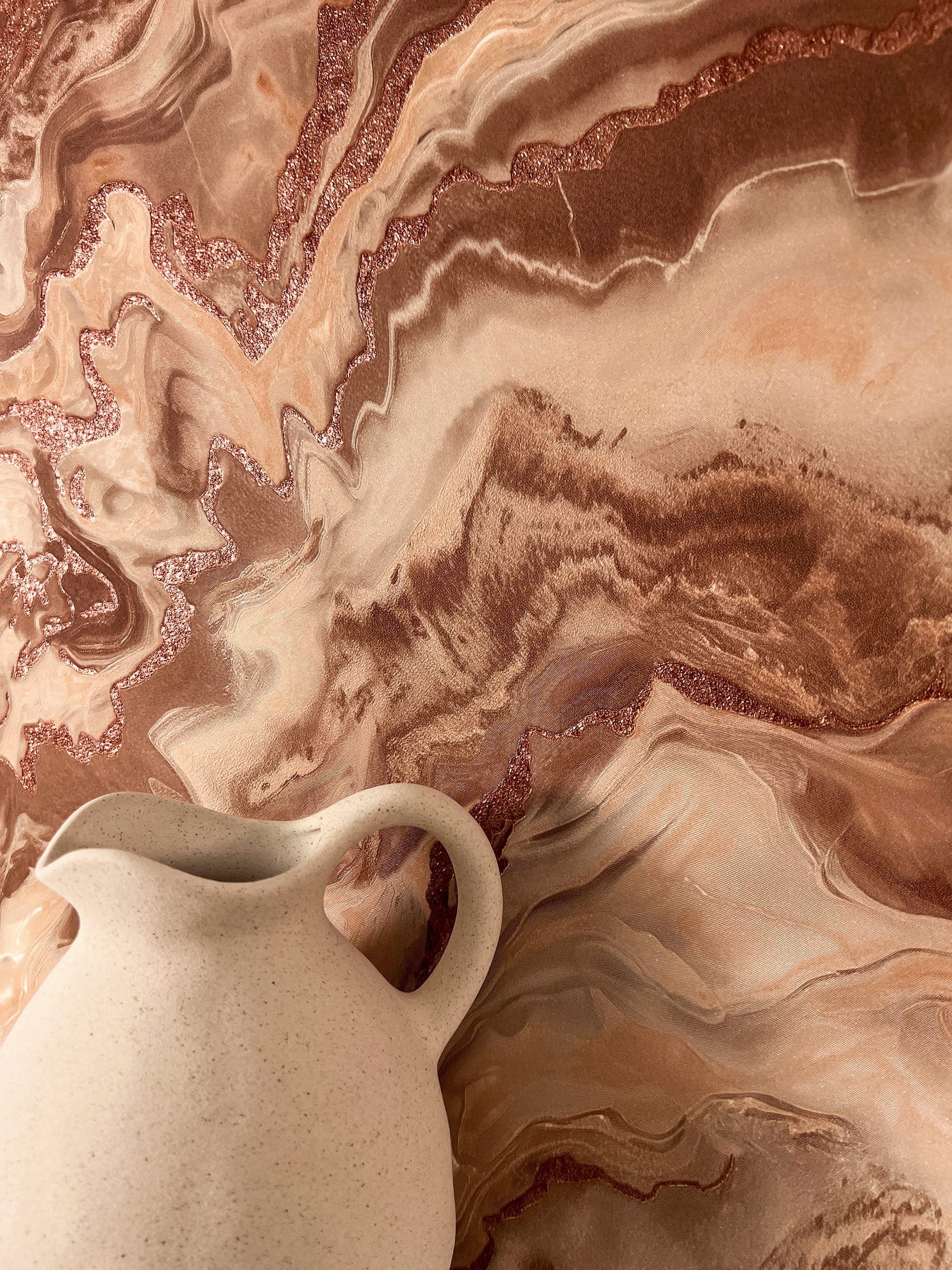 Oberflächenstruktur | Braun Tapete Modern Marmor - Mustertapete Marmoroptik Rot-Braun Kupfer 3D Optik Glamour Acryl Leicht glänzend für Wohnzimmer Schlafzimmer Küche |