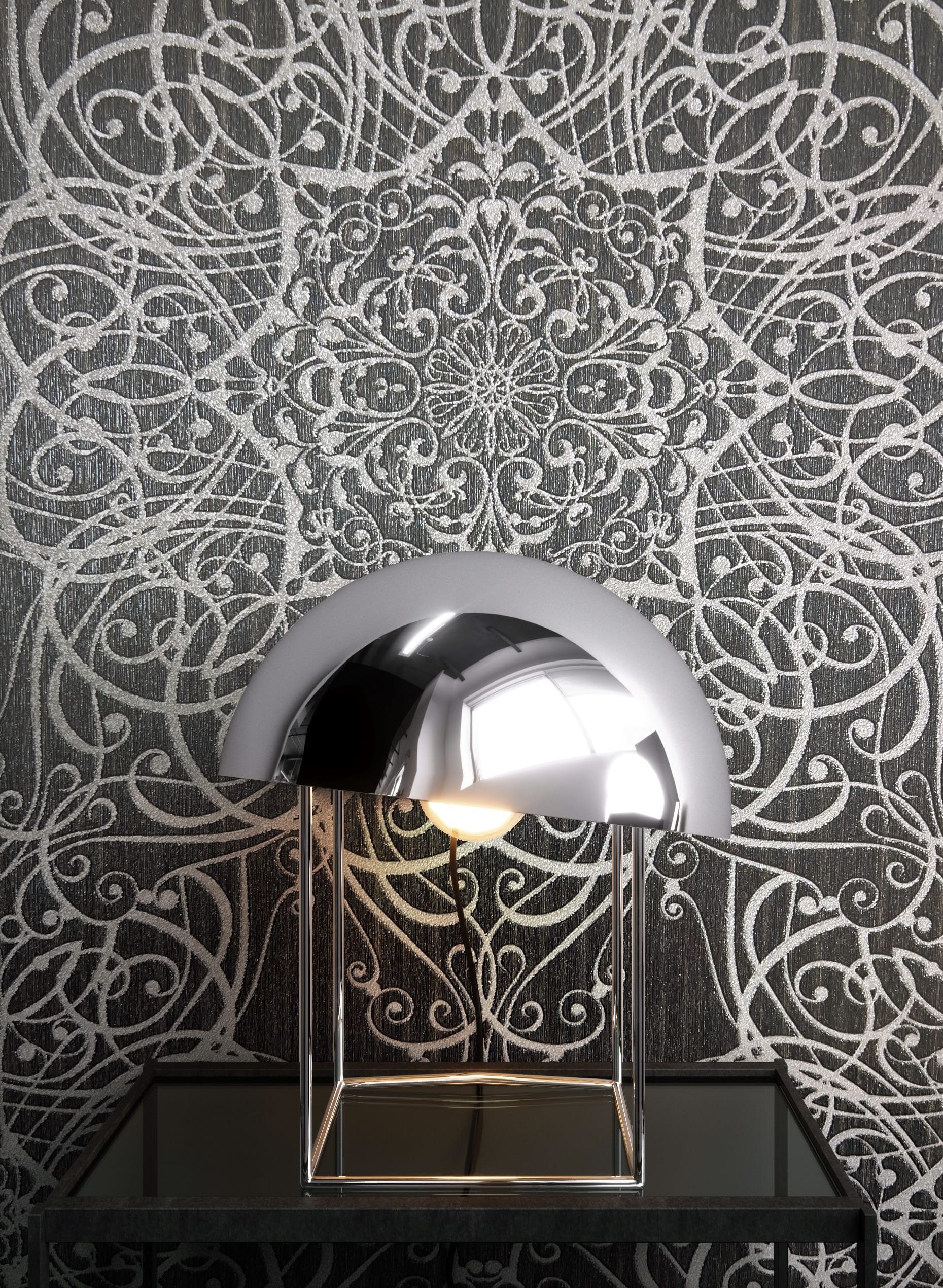 Oberflächenstruktur | Grau Tapete Vintage Ornament - Vintage Mustertapete Silber Braun Modern 3D Optik Struktur Glitzer für Schlafzimmer Wohnzimmer Küche |