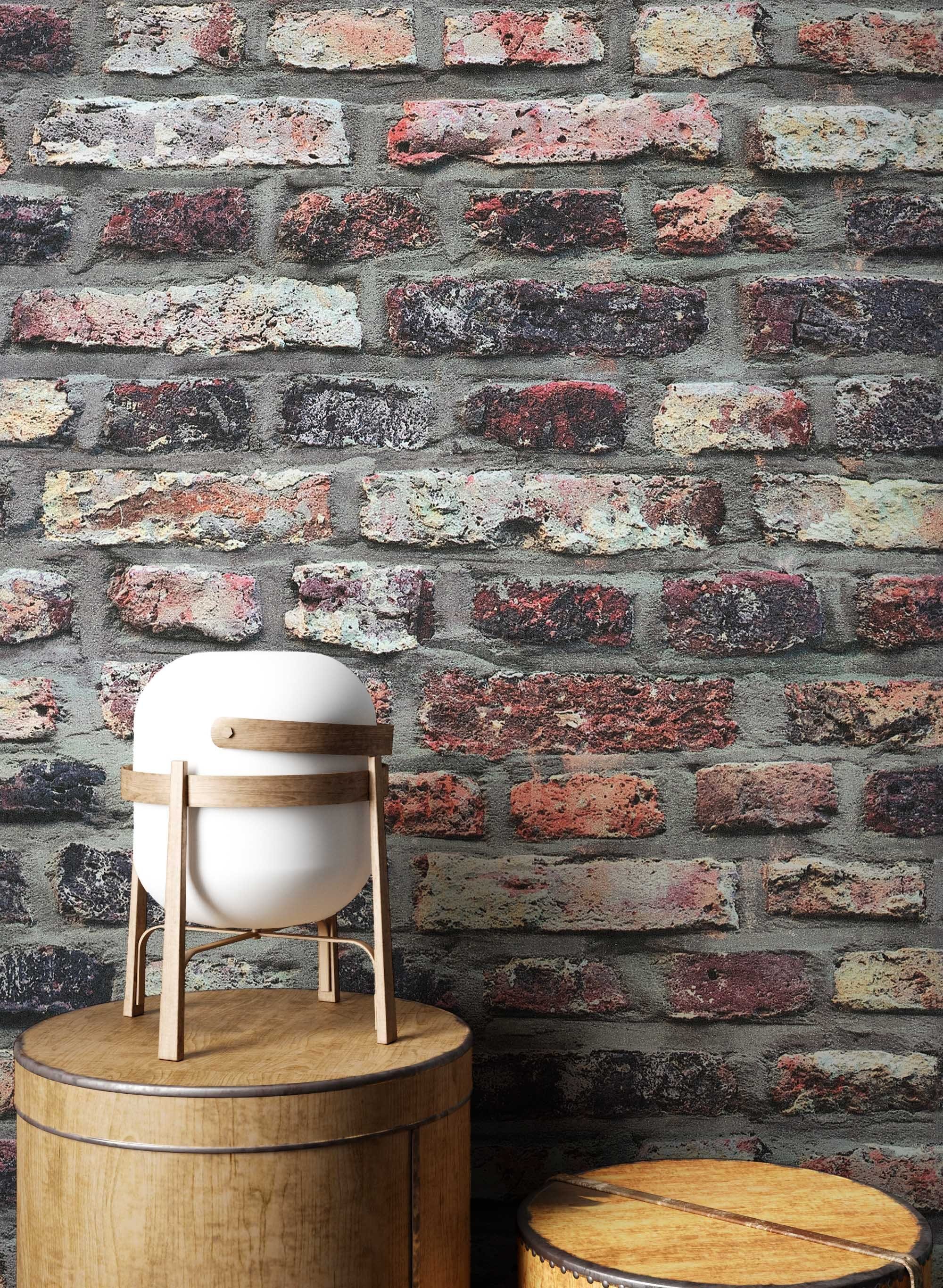 Oberflächenstruktur | Steintapete Anthrazit Rot Ziegelstein Backstein Mauerwerk Klinker Tapete Steinoptik Wohnzimmer Schlafzimmer Flur |