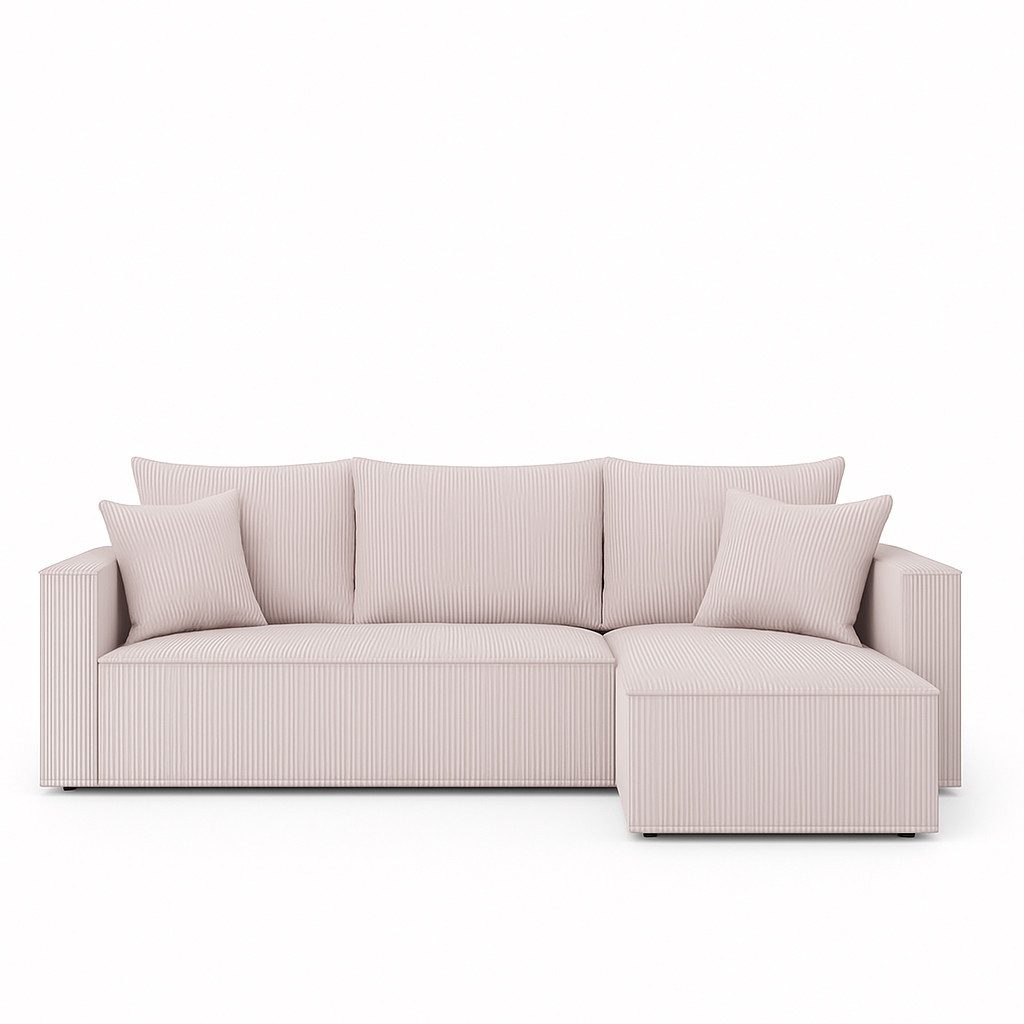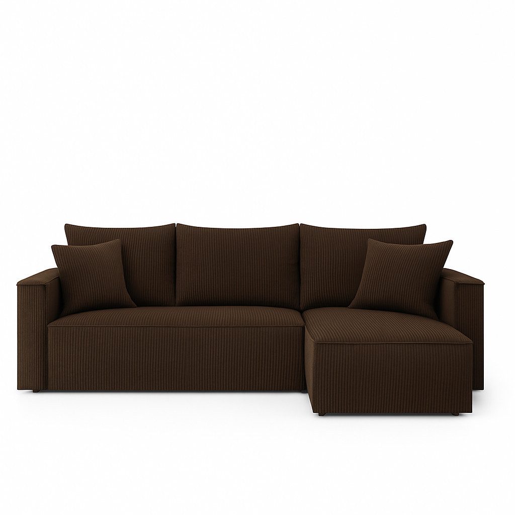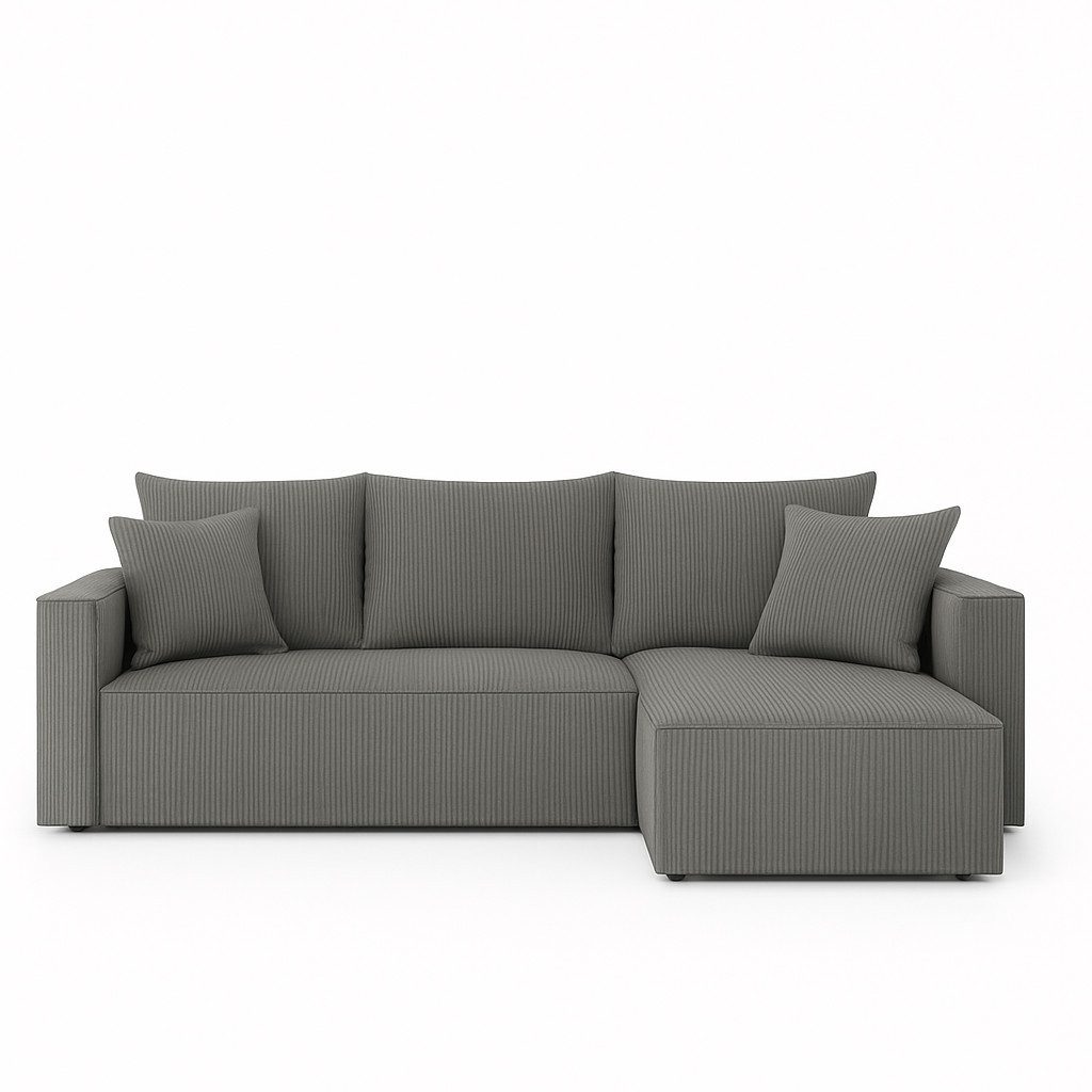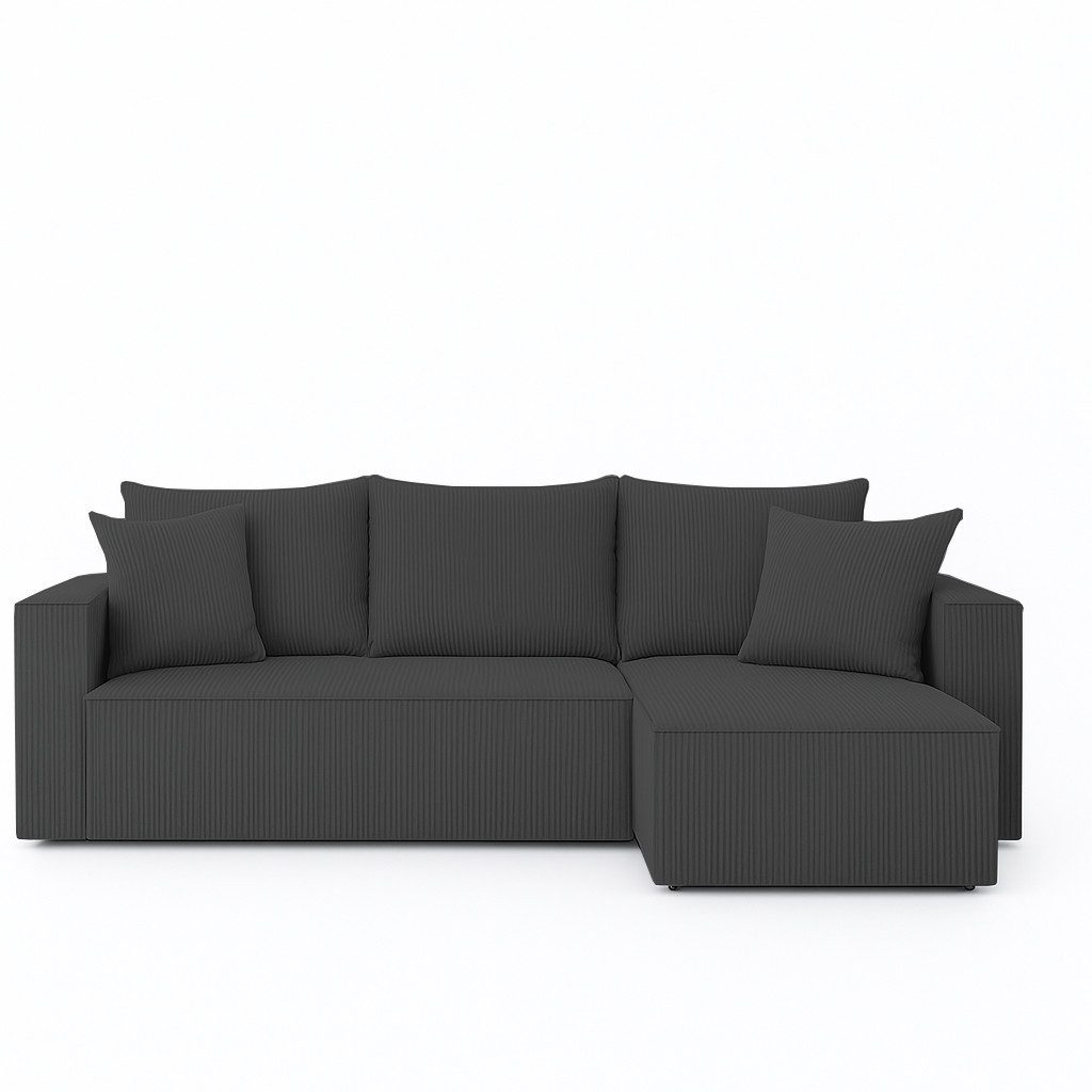 Das moderne Ecksofa mit Schlaffunktion vereint Komfort und Funktionalität in einer eleganten, minimalistischen Form. Seine geometrische Form fügt sich perfekt in die Ästhetik zeitgenössischer Interieurs ein und verleiht ihnen Gemütlichkeit und Stil. Das Ecksofa wurde für die alltägliche Entspannung konzipiert, eignet sich aber dank seiner großen Liegefläche von 200 × 130 cm auch als bequemes Bett für Gäste. Die lose Rückenlehne und die dekorativen Kissen tragen nicht nur zum Komfort bei, sondern unterstreichen auch den modernen Charakter des Möbelstücks