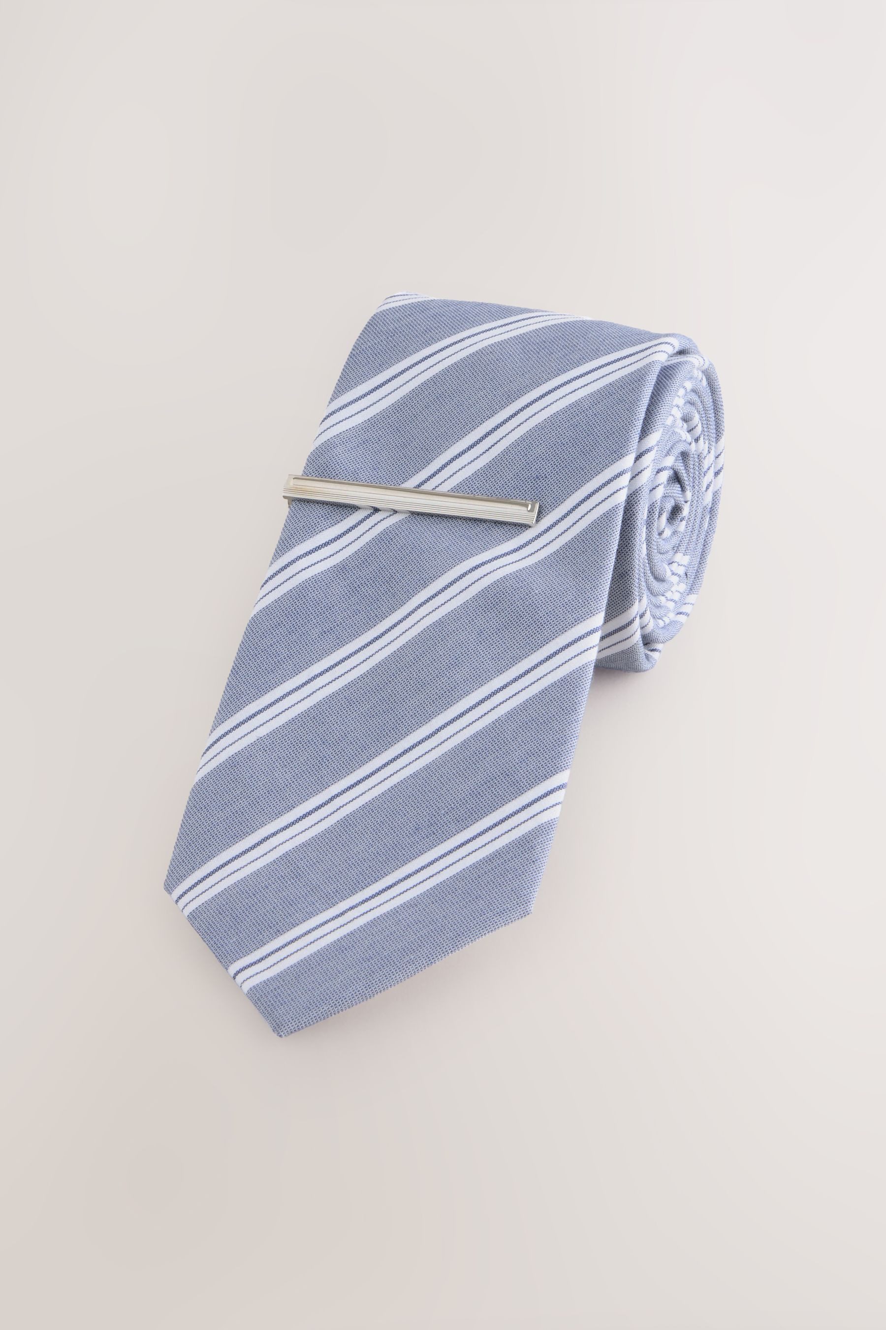 Materialzusammensetzung | Krawatte: 62 % Polyester, 38 % Baumwolle. ( Krawattenclip: 100 % Metall). |