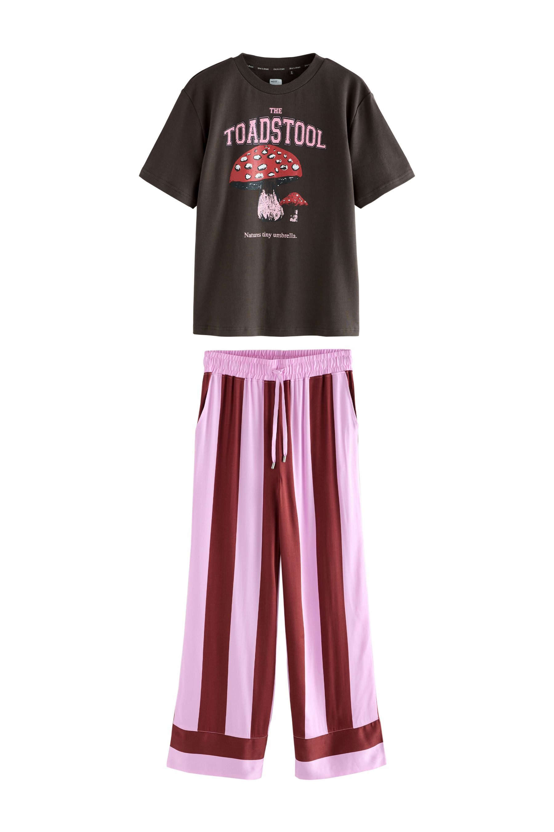 Materialzusammensetzung | Pyjamaoberteil: 100 % Baumwolle. Pyjamahose: 100 % Viskose (LENZING™ ECOVERO™). |