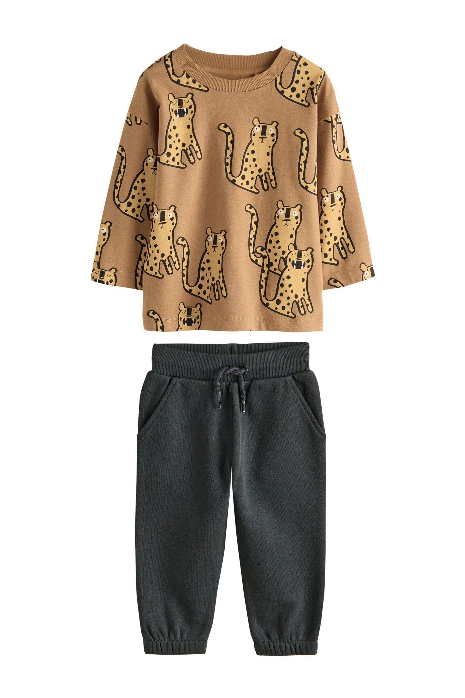 Materialzusammensetzung | Sweatshirt: 100 % Polyester (recycelt). Jogginghose: 80 % Baumwolle, 20 % Polyester (recycelt). |