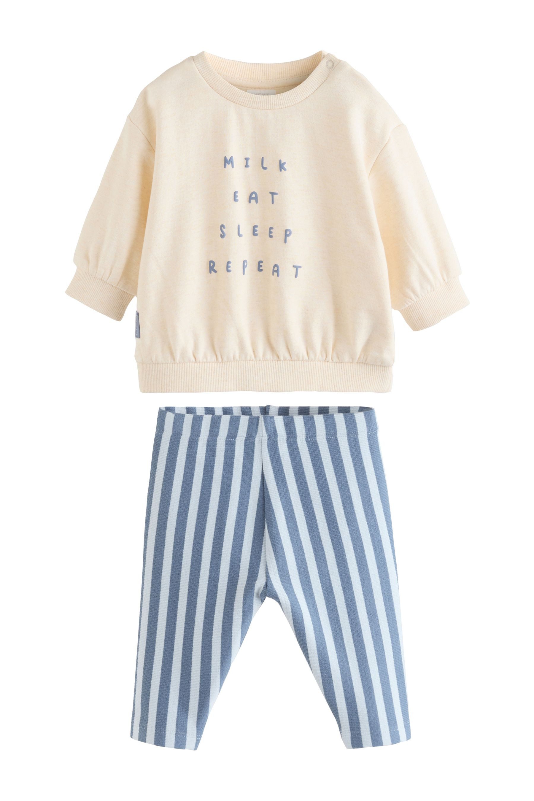 Materialzusammensetzung | Pullover: 100 % Baumwolle. Leggings: 95 % Baumwolle, 5 % Elasthan. |