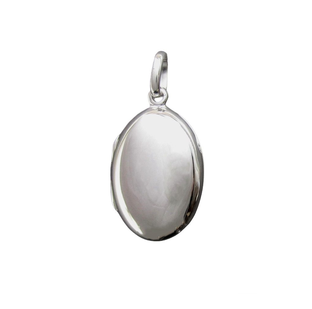 Dieses silberne, ovale Medaillon ist ein elegantes Schmuckstück, das oft eine tiefe persönliche oder emotionale Bedeutung hat. Es besteht aus glänzendem Silber und zeigt eine weiche, abgerundete ovale Form, die mit glatten, eleganten Linien gestaltet ist. Das Medaillon lässt sich öffnen, um im Inneren kleine Fotos, Notizen oder andere Erinnerungsstücke aufzubewahren.