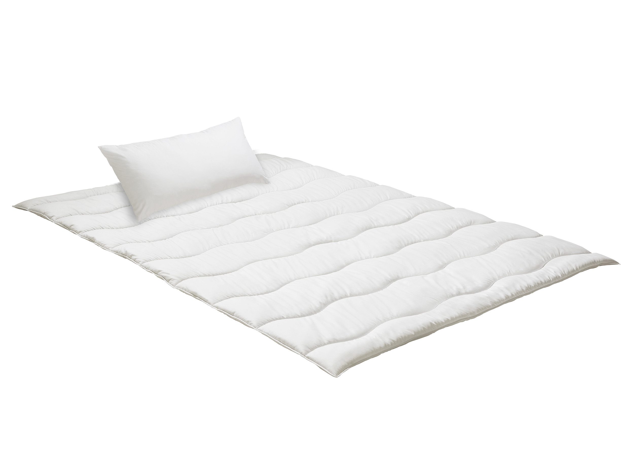 Der Mikrofaserbezug verleiht dem Steppbett sowie dem Kissen eine besondere Weichheit und einen angenehmen Schlafkomfort. Ein großer Vorteil von Mikrofaser ist die Eigenschaft, die Feuchtigkeit sehr gut aufzunehmen und diese schnell wieder an die Umgebung abzugeben. Ein trockenes Schlafklima ist somit zu jeder Jahreszeit gewährt.