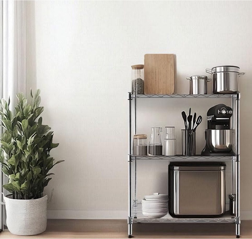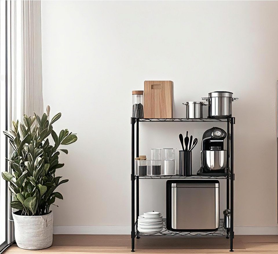 Multifunktionales Regal- Das Regal bietet praktischen Stauraum in Küche, Bad, Büro, Garage und jedem anderen Wohn- oder Arbeitsbereich. Es ist eine robuste und platzsparende Aufbewahrungslösung für Haushaltsutensilien, Geräte, Werkzeuge und Büromaterialien usw. Das vielseitige Aufbewahrungsregal eignet sich perfekt für Küchenregale, Badezimmerregale, Kellerregale, Garagenregale, Speisekammerregale und andere Organisationsregale usw.