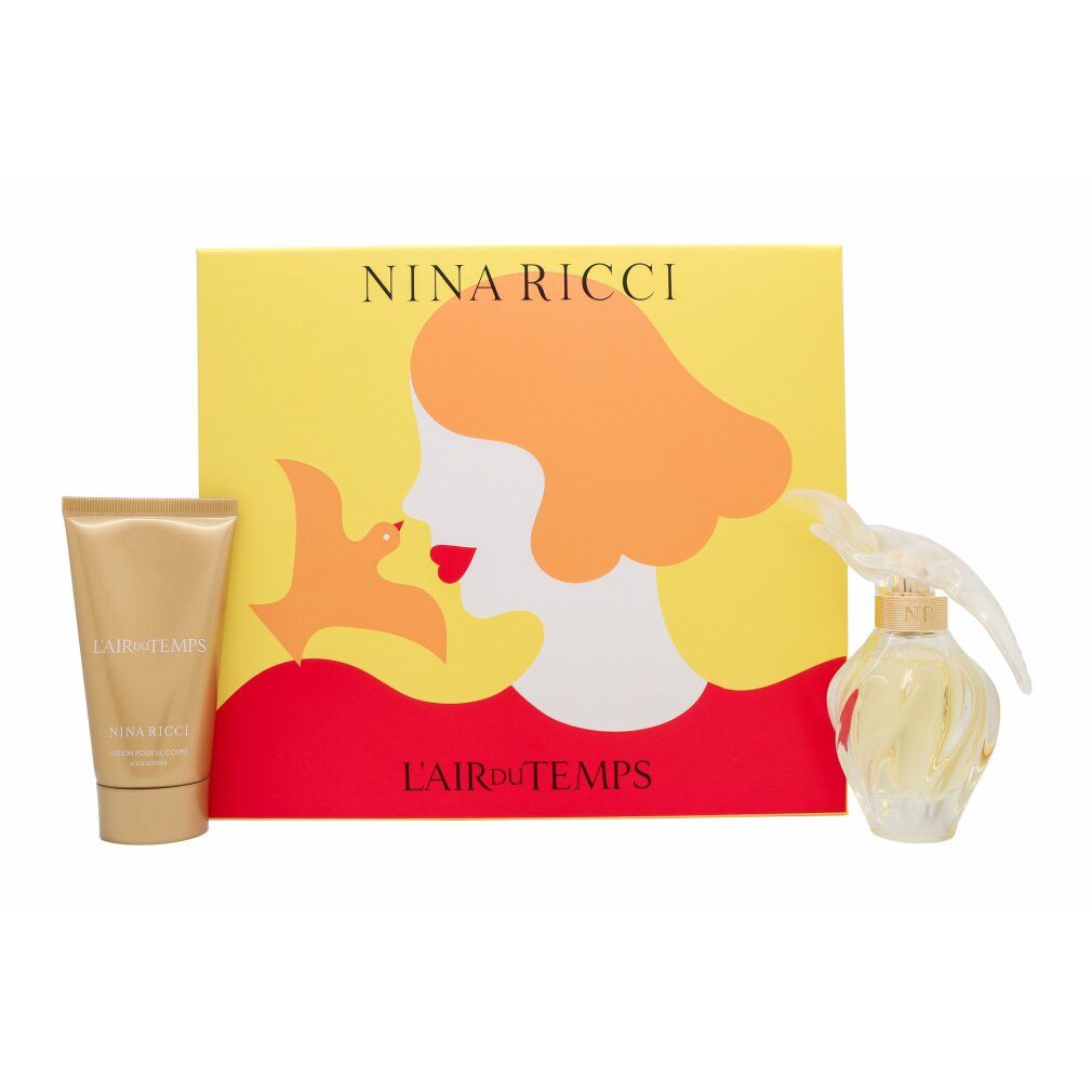 Geschenksets Nina Ricci LAir du Temps Set, (50ml + 75ml) Seit 1948 zieht LAir du Temps Frauen mit seiner Weiblichkeit, Originalität und seinem Engagement für Frieden, Reinheit und Freiheit an. Heute ist es zu einem legendären Klassiker auf der ganzen Welt geworden, eine Referenz, die Generationen von Frauen durch ihre berühmte Taubenflasche und ihren einzigartigen Fußabdruck erobert hat. Im Kopf duftet LAir du Temps nach Bergamotten und Gartennelken, Neroli und Pfirsich sowie nach Rosenholz. Das Herz besteht aus Jasmin und Centifolia-Rosen, während die Basis nur von Sandelholz und Iris getragen wird. Das Set enthält: Parfum Zerstäuber 50ml, Bodylotion 75ml.