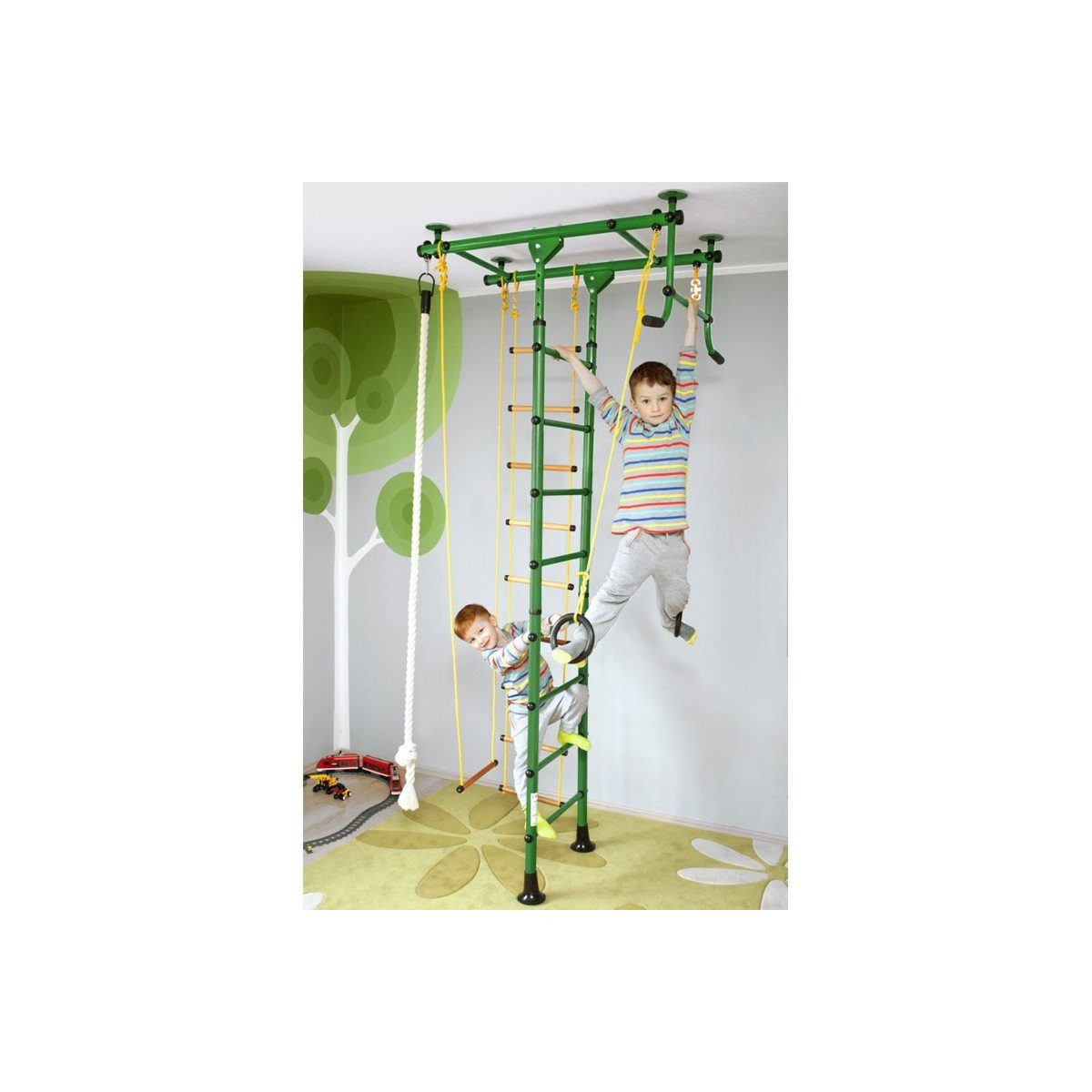 FitTop M1 ist ein Heimsportgerät für eine harmonische Entwicklung von Kindern und Erwachsenen. Es ist eine Ständerstrebkonstruktion aus Rohren, die zwischen Boden und Decke gespannt wird und leicht zusammen und auseinandergebaut werden kann. Das Kindersportgerät ist für Training der Kinder unter häuslichen Bedingungen bestimmt. Für höchste Sicherheit Ihres Kindes und zur Vermeidung von Verletzungen weist das Klettergerüst hochqualitative Verschraubungen und durchdachte Halterungen auf. Всі Stahlteile der Kletterwand sind galvanisch behandelt, zweifach pulverbeschichtet und verzinkt und bieten hervorragenden Rostschutz und eine lange Haltbarkeit. Wir legen großen Wert auf Qualität auch im Detail: Klettertau aus 100% Baumwolle, Seile (LIROS) Geflecht ist aus UV-stabilisiertem und widerstandsfähigem Polypropylen-Multifil 10 mm. Wählbare Farbe, Höhe und Sprossenmaterial Wählen Sie die passende Raumhöhe, die gewünschte Farbe und entscheiden Sie sich zwischen Metall- und Holzsprossen für Ihre Sprossenwand. Metallsprossen sind zweifach pulverbeschichtet, stabil, langlebig und günstig. Holzsprossen sind aus Birkenholz hergestellt, haben einen Durchmesser von 32 mm, sind zweifach versiegelt und sorgen für einen angenehmen und festen Griff. Auf Anfrage können wir Ihnen das Klettergerüst auch in einer anderen Farbe anfertigen. Montage Die Einfachheit und Zuverlässigkeit der Konstruktion des Klettergerüstes ermöglicht einen schnellen Auf- und Abbau jeglicher Konfiguration. Das Modell FitTop M1 wird mittels Verstrebungen ohne Einsatz von Bohrmaschinen, Hammer und Nägeln zusammengebaut. Fördern Sie die körperliche Entwicklung Ihres Kindes Der Bewegungsmangel hat längst auch die Kinderzimmer erreicht. In einer Zeit, die geprägt ist von Computerspielen, Fernsehen und Spielkonsolen kommt eine gesunde Bewegung ins Hintertreffen. Kinder müssen wieder die Freude an der gesunden Bewegung für sich entdecken. Gerade wenn die Anforderungen in der Schule steigen ist der körperliche Ausgleich wichtig. Übergewicht, sowie Herz-, Kreislauf-, und Wirbelsäulenerkrankungen können ansonsten die Folge sein. Die Forscher haben festgestellt, dass schon nach 6 Monaten bei täglichen 10-Minuten-Übungen am Kindersportgerät eine Besserung des allgemeinen körperlichen Zustandes, der Haltung, des Appetits und des Schlafs des Kindes zu beobachten ist. Mit unseren Spielgeräten werden Muskeln und Gelenke gestärkt, Balance und Reaktionsfähigkeiten trainiert und der Stoffwechsel in Gang gebracht. Technische Details Довжина: 100 cm Breite: 55 cm Höhe: 200 bis 290 cm Gewicht: 31 kg Sprossendurchmesser: ca. 32 mm Sprossenabstand: 23 cm max. Belastung des Klettergerüstes: 130 kg max. Belastung der Hängeturngeräten: 80 kg Lieferumfang 1 x Metalldeckenrahmen 1 x Metallsprossenleiter 1 x Strickleiter 2 x Turnringe 1 x Klimmzugstange 1 x Klettertau 1 x Trapezstange Montagezubehör Bedienungsanleitung Zusätzlich für Ihre Sprossenwand können Sie bei uns ein Schutzpolster und eine Schrägbrett kaufen. Und als Fallschutz empfehlen wir Ihnen unsere Weichbodenmatten. EIGENSCHAFTEN - für Raumhöhen von 2,00 bis 2,90 m - belastbar bis 130 kg - kinderleichte Montage ohne Einsatz von Bohrmaschinen, Hammer und Nägeln - inkl. Turnausrüstung HOHE QUALITÄT - Die Klettergerüste von Niro Sportgeräte GmbH werden unter anderem auch in Schulen, Kindergärten und Turnhallen eingesetzt, da sie eine außerordentlich hohe Qualität und Langlebigkeit haben. Unsere Sport- und Fitnessgeräte werden in Deutschland ausschließlich aus hochwertigen Materialien hergestellt. Made in Germany - weltweit ein Qualitätssiegel, auf das wir stolz sind! GARANTIE - Sie können sich auf die Qualität von Niro Sportgeräte GmbH verlassen! Sollten Sie die Garantie aufgrund eines Herstellungsfehlers in Anspruch nehmen, ersetzen wir das Produkt kostenlos und schnell. Wir stehen Ihnen für alle Fragen und Wünsche gerne zur Verfügung!