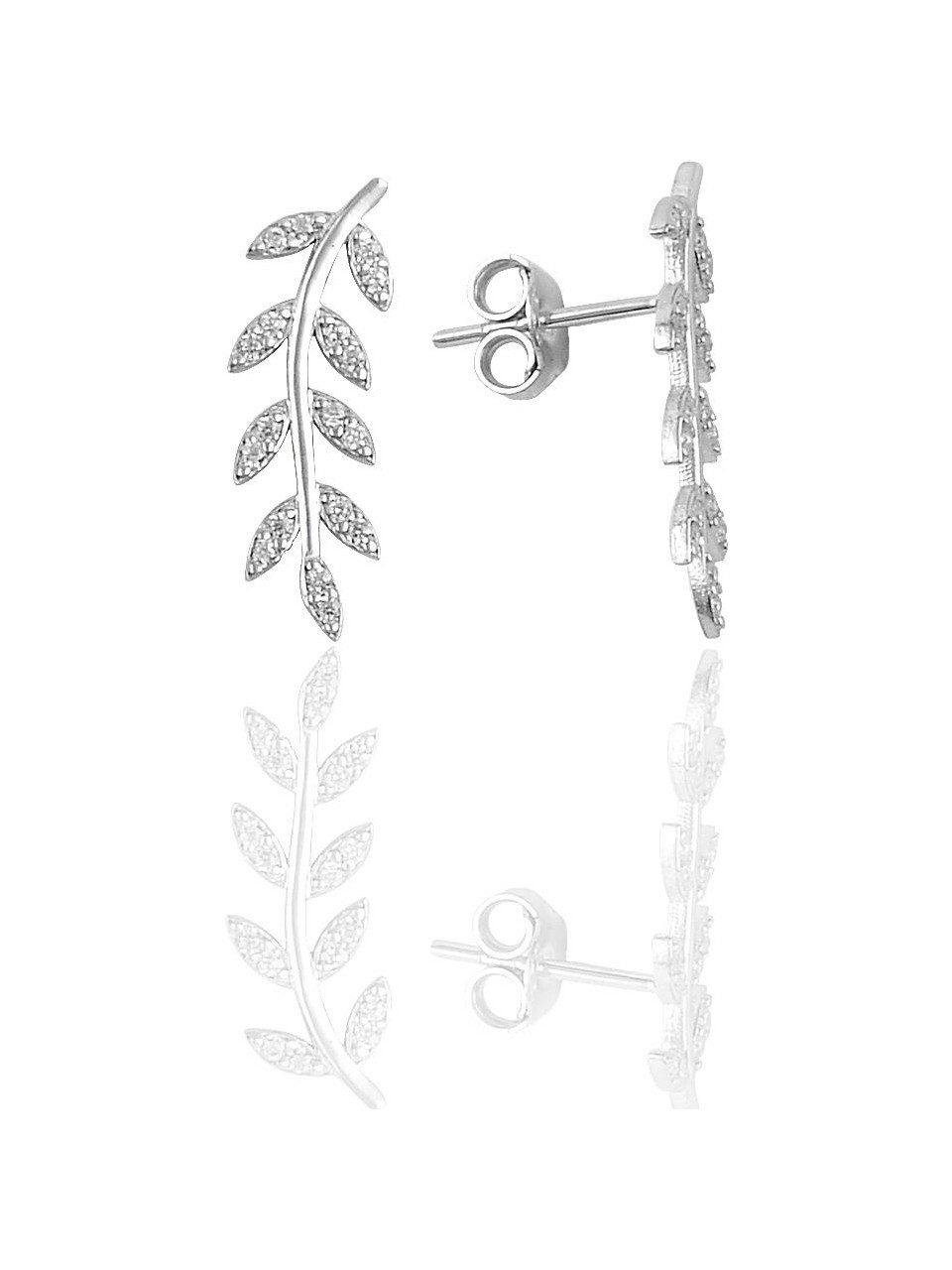 Diese eleganten Ohrstecker sind aus hochwertigem 925 Sterling Silber gefertigt und mit einer schützenden Rhodinierung versehen, die für langlebigen Glanz sorgt. Das filigrane Blatt-Design ist mit funkelnden Zirkonia Steinen besetzt und verleiht den Ohrringen eine feminine und zugleich edle Ausstrahlung. Mit einer Розмір von ca. 20 x 6 mm schmiegen sich die Stecker sanft am Ohr an und setzen stilvolle Akzente – ideal sowohl für den Alltag als auch für besondere Anlässe.