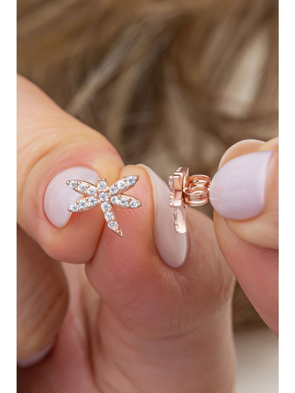 Diese minimalistisch gestalteten Ohrstecker in Libellenform sind ein Symbol für Leichtigkeit und Freiheit. Gefertigt aus 925er Sterlingsilber und veredelt mit edler Rosévergoldung, verleihen sie jedem Outfit eine moderne und feminine Note. Die funkelnden Zirkonsteine setzen glanzvolle Akzente und sorgen für ein stilvolles Funkeln bei jeder Bewegung. Durch ihr zartes Design sind die Ohrringe sowohl für den Alltag als auch für besondere Anlässe die ideale Wahl. Geliefert in einer eleganten Schmuckbox – auch ein bezauberndes Geschenk für Ihre Liebsten.