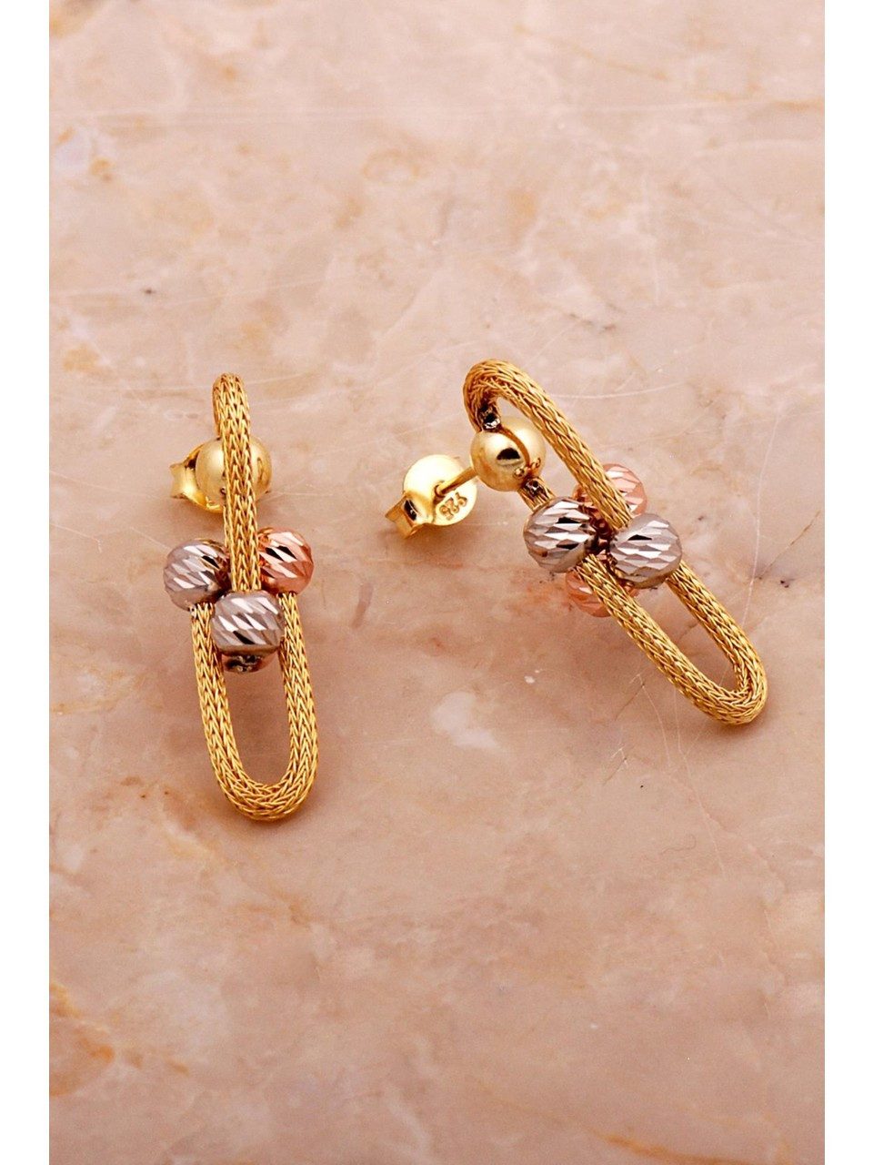 Diese eleganten Dorissa-Ohrringe bestehen aus 925 Sterling Silber und werden in aufwendiger Handarbeit im traditionellen Flecht-Design gefertigt. Die Oberfläche ist mit einer hochwertigen Grün-Gold-Beschichtung veredelt, die dem Schmuckstück den warmen Glanz von echtem Gold verleiht. Mit ihrem stilvollen Design und der kunstvollen Verarbeitung sind sie sowohl für den Alltag als auch für besondere Anlässe ein zeitlos schönes Accessoire.