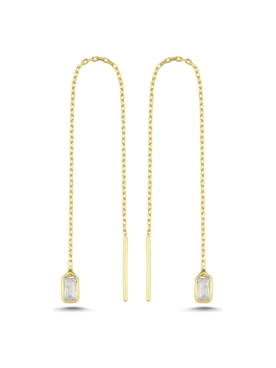 Diese stilvollen Kettenohrringe aus 925 Sterling Silber mit edler Goldvergoldung vereinen Minimalismus mit luxuriöser Eleganz. Der rechteckige Baget-Zirkonia (ca. 0,30 x 0,55 cm) bringt funkelnde Akzente, während die ca. 10 cm lange filigrane Kette für eine moderne und feminine Note sorgt. Mit einem Gewicht von nur ca. 0,80 g sind die Ohrringe federleicht und angenehm zu tragen. Ob für den Alltag oder besondere Anlässe – dieses Modell verleiht jedem Outfit einen Hauch von Glamour. Geliefert in einer hochwertigen Schmuckbox, ist es auch die perfekte Geschenkidee.