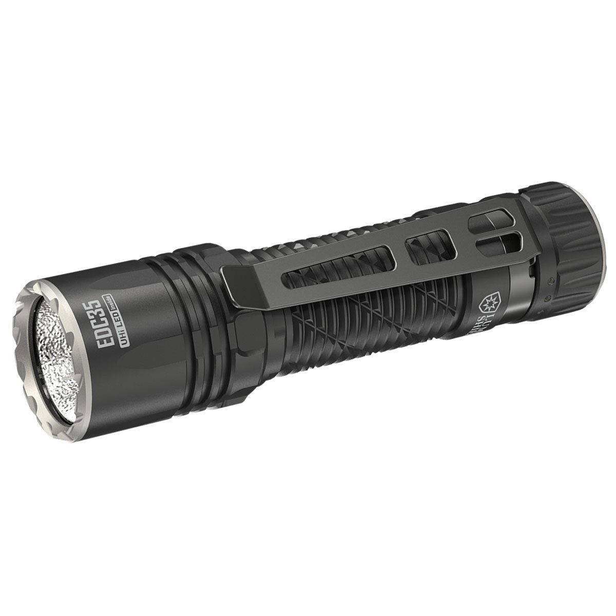 Die Nitecore EDC35 ist eine extrem leistungsstarke und kompakte EDC-Taschenlampe, die mit taktischen Features beeindruckt. Mit 9 LED-Kernen der NiteLab UHi 40 MAX LED bietet sie eine unglaubliche Leistung von bis zu 5000 Lumen. Die Taschenlampe verfügt über ein starkes Spotlicht mit 3000 Lumen und einer Leuchtweite von 550 Metern durch die Ansteuerung der LEDs. Die Funktion Lumin Shield schaltet die 8 außen angeordneten LEDs hinzu und sorgt für ein Flutlicht mit 5000 Lumen. Ein weiteres Highlight ist der fest verbaute 21700er Li-Ion Akku mit einer Kapazität von 6000mAh. Die EDC35 kann über einen mechanischen Lockout gesperrt werden und der Heckschalter ist als Zwei-Stufen-Schalter ausgelegt. Die Funktionen Lumin Shield und SEARCH sind als Momentlicht konzipiert und können nicht dauerhaft eingeschaltet werden. Zudem erkennt ein optischer Sensor Hindernisse vor der Linse und reduziert die Leuchtstärke, um Schäden zu vermeiden.